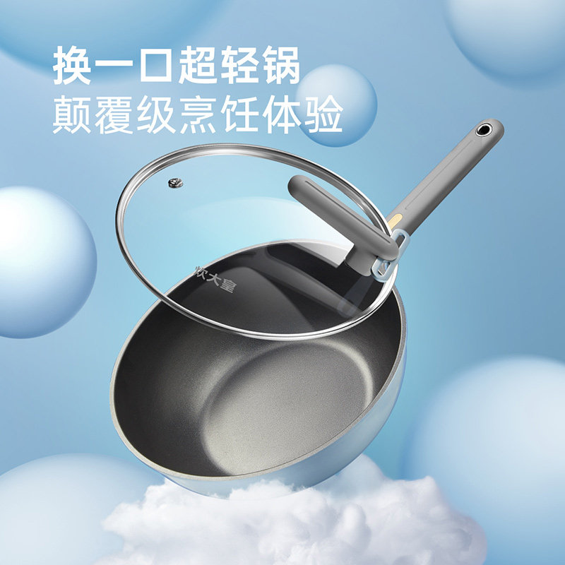 炊大皇超轻锅不粘锅炒锅家用不沾女士专用平底炒菜锅电磁燃气通用