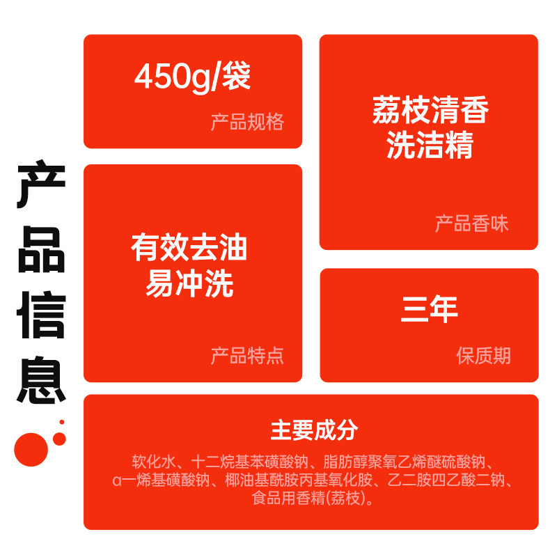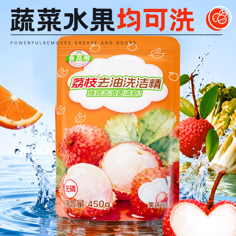 450g洗洁精家用补充袋装荔枝食品用洗涤剂去油渍清洗剂特价正品XF