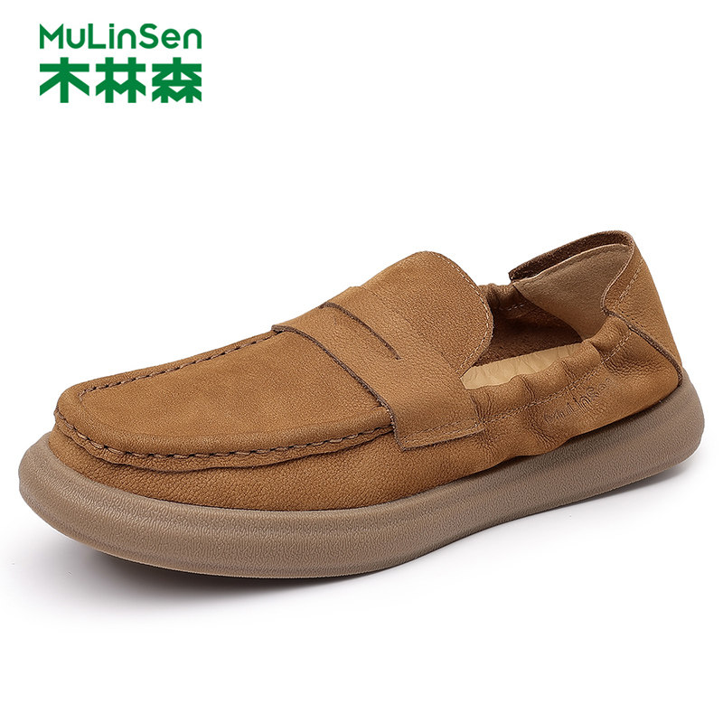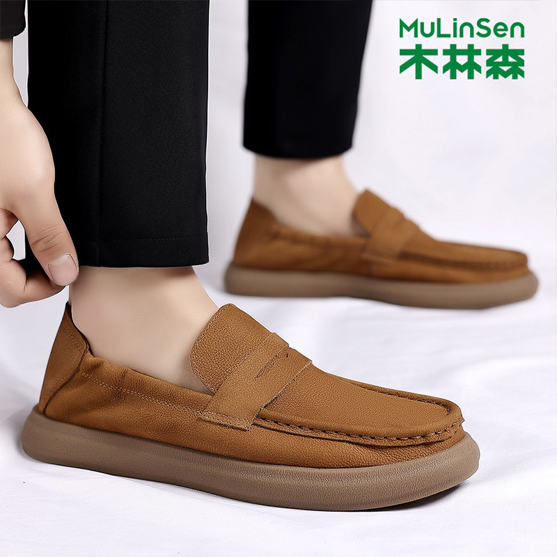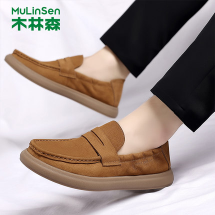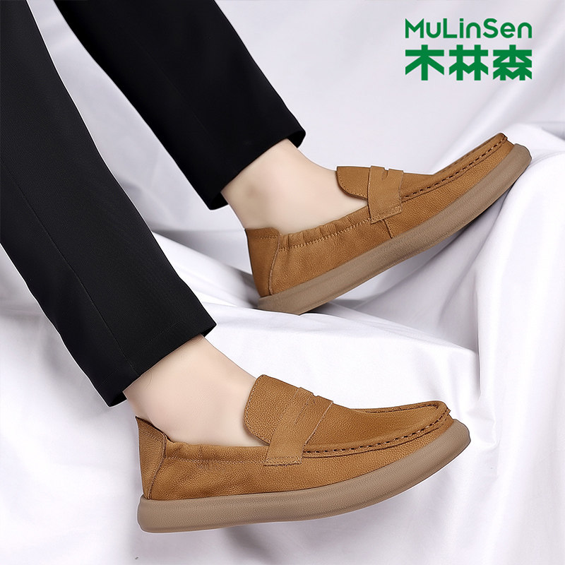 木林森男鞋2025新款春季真皮豆豆鞋男士一脚蹬休闲皮鞋