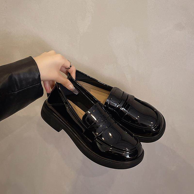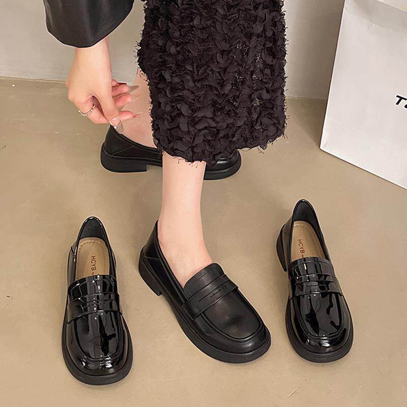 春夏英伦漆皮圆头通勤小皮鞋女2026新款一脚蹬乐福鞋0227z