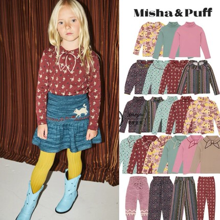 2025年秋冬MP女童有机棉领结T恤花朵花边打底衫连衣裙荷叶边长袖