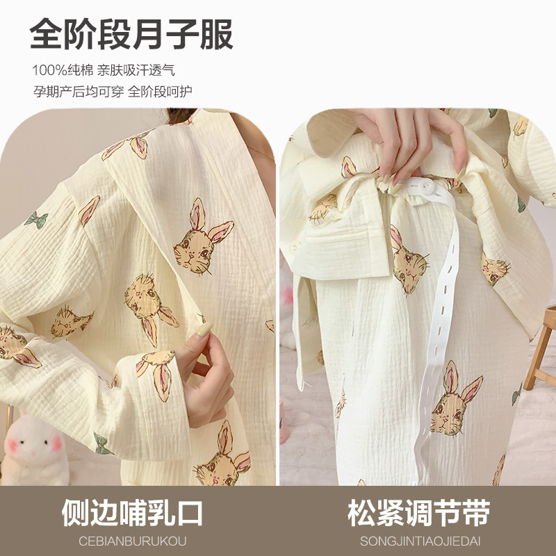 纱布纯棉月子服夏季薄款产后坐月哺乳孕妇睡衣春秋冬产妇喂奶家居