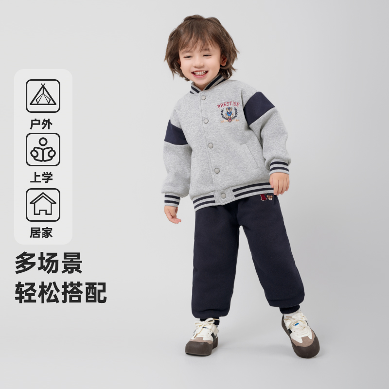 右欧童装男童女童加绒棒球服外套秋冬装美式学院儿童宝宝加厚上衣