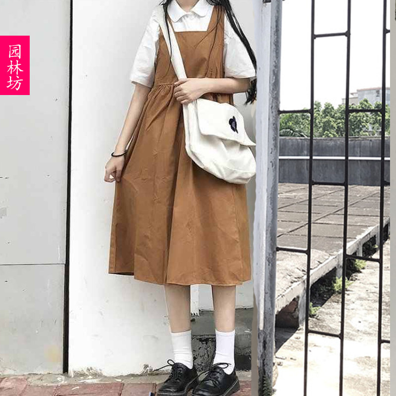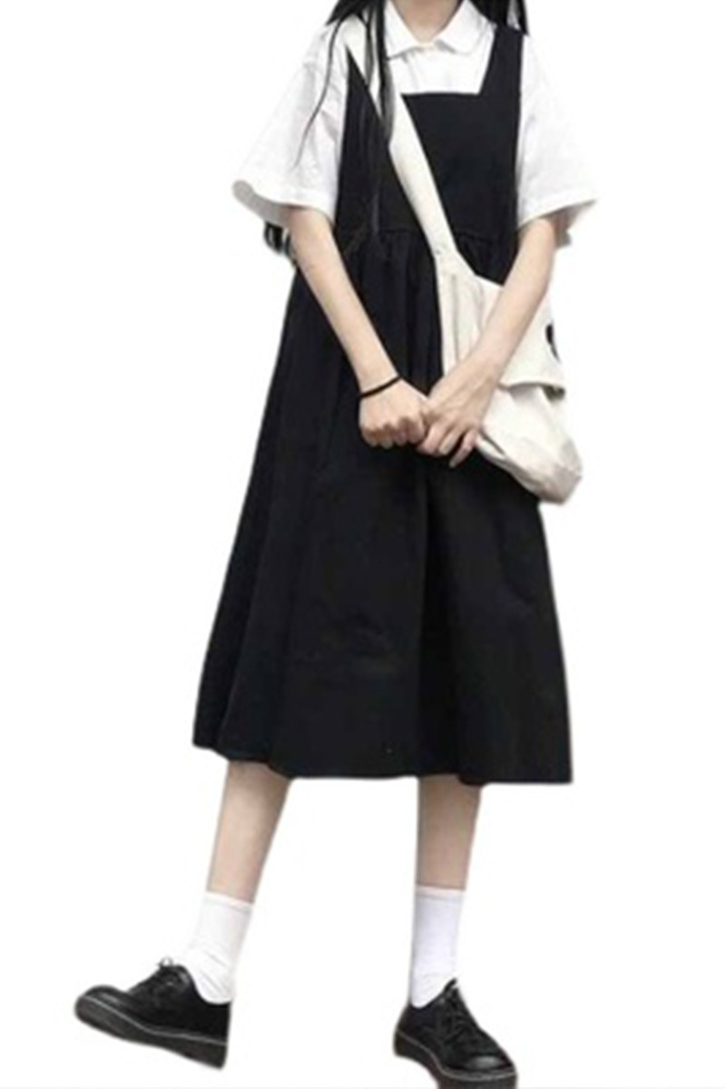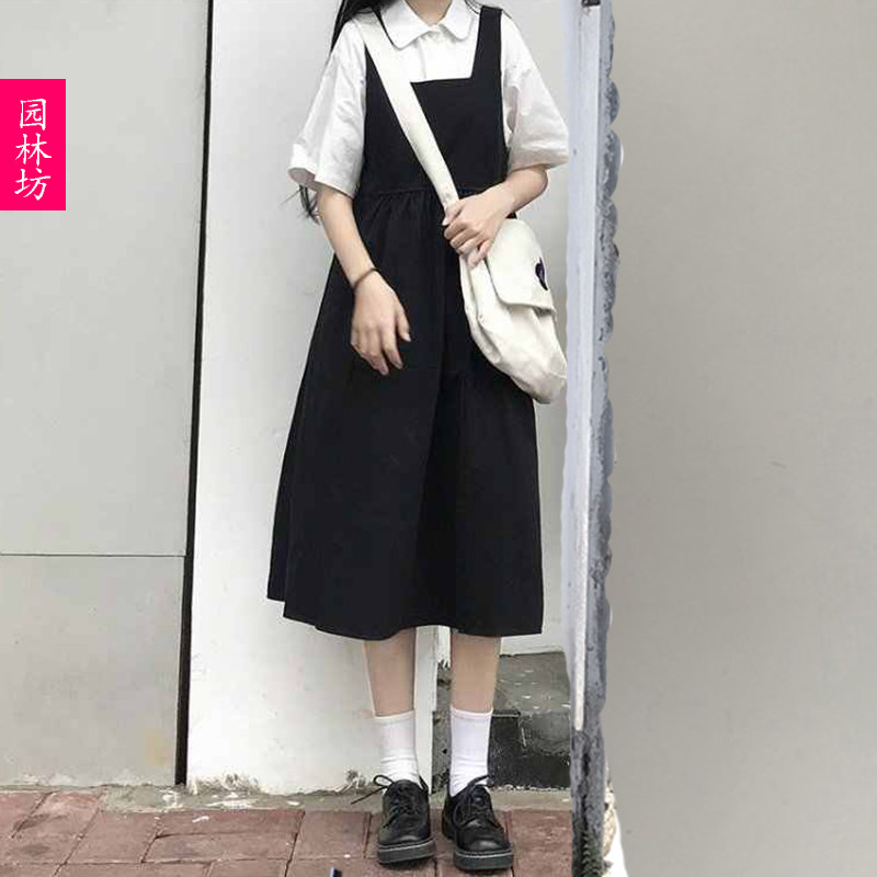 日系jk制服背带连衣裙女夏季学院风黑色背心裙小个子短袖衬衫套装