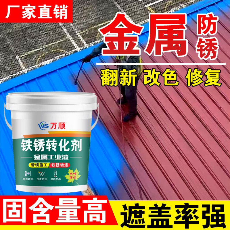 免打磨彩钢瓦翻新防锈漆铁锈转化剂钢结构铁皮护栏水性环保金属漆