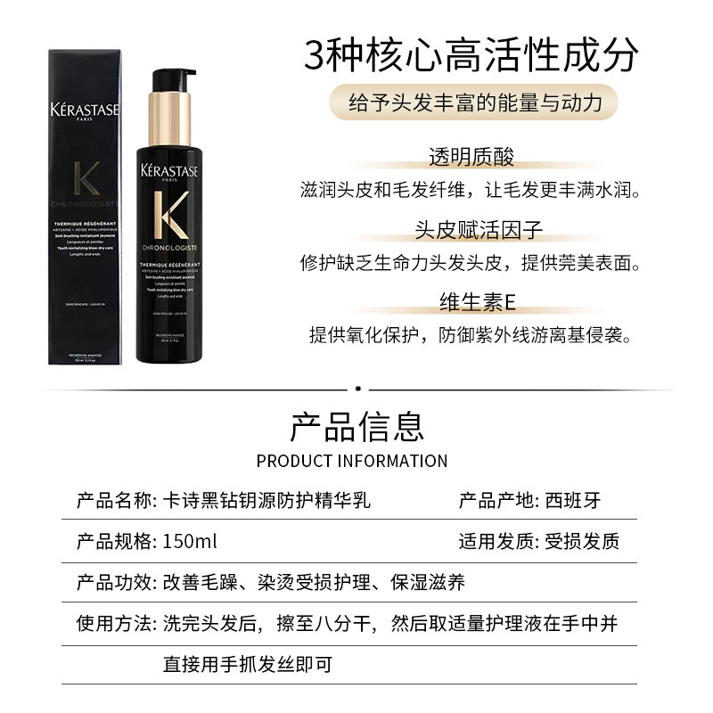卡诗黑钻鱼子酱免洗头发隔热乳