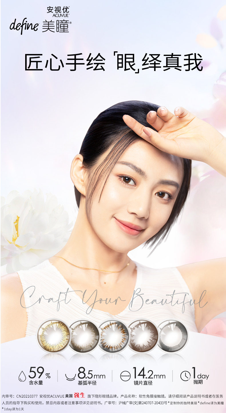 强生美瞳define日抛盒10片装隐形眼镜近视女安视优旗舰正品进口