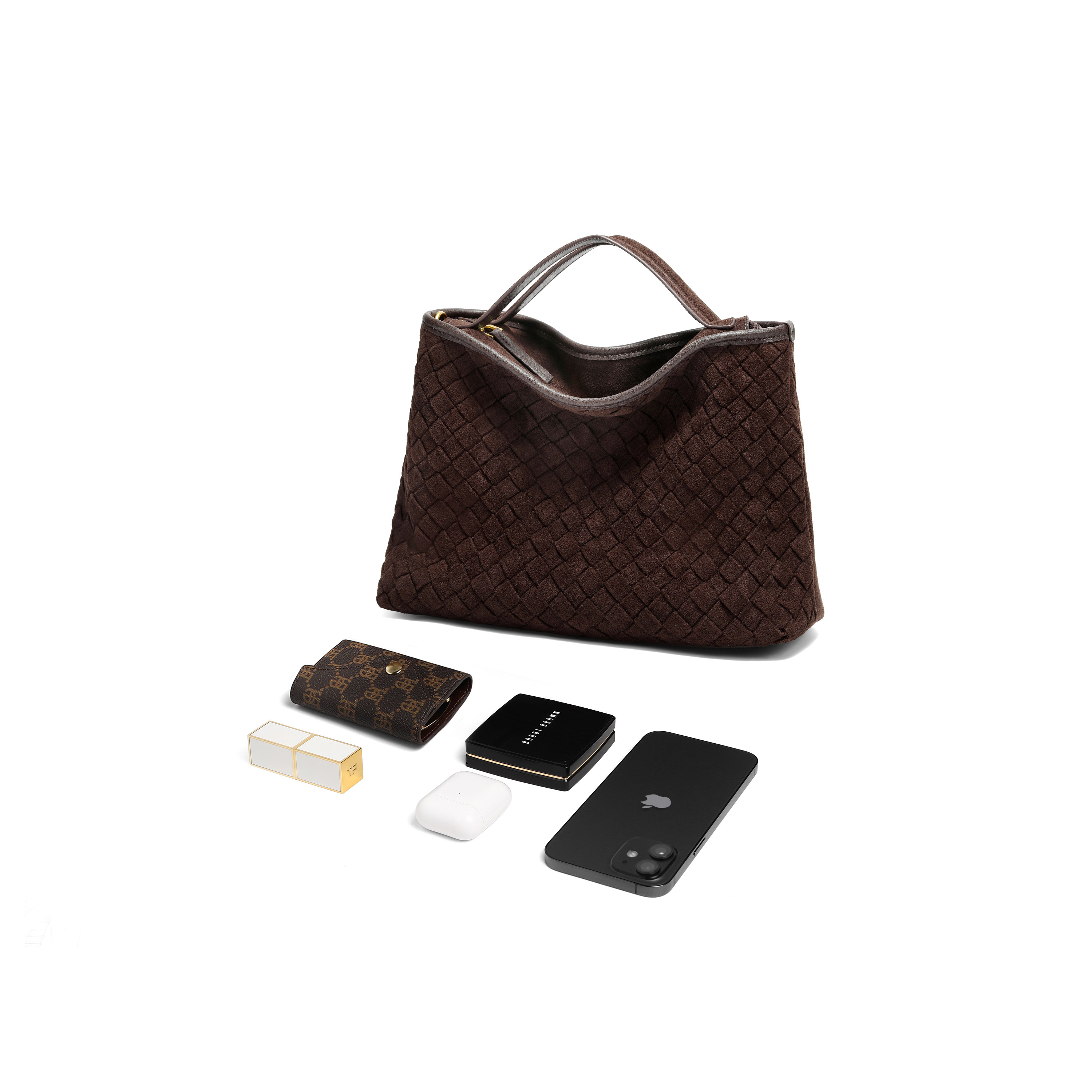 百丽商场同款编织拼接托特包