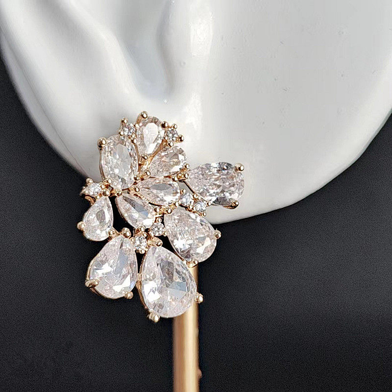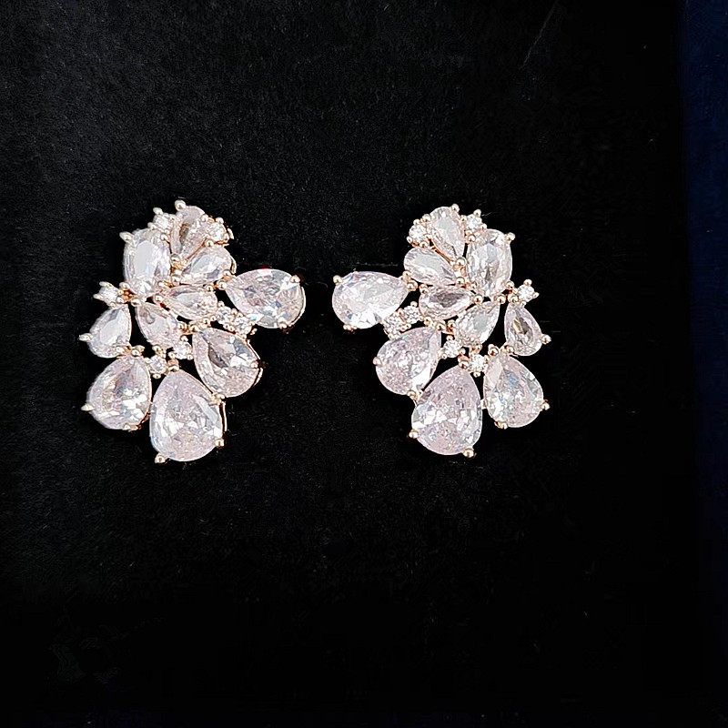 新款高档3A锆石耳环耳钉婚纱礼服结婚宴会首饰轻奢穿搭优雅精致