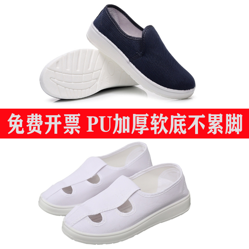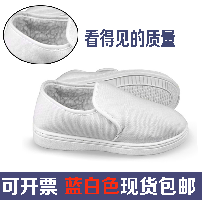 静电鞋棉鞋加绒加厚无尘鞋软底帆布鞋蓝白色男女款防滑保暖工作