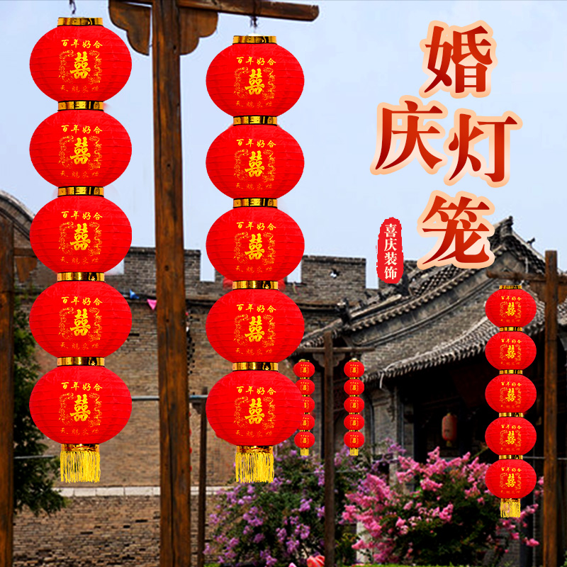 院子布置装饰连串喜字串灯笼结婚大门龙凤囍字户外婚庆礼冬瓜灯笼