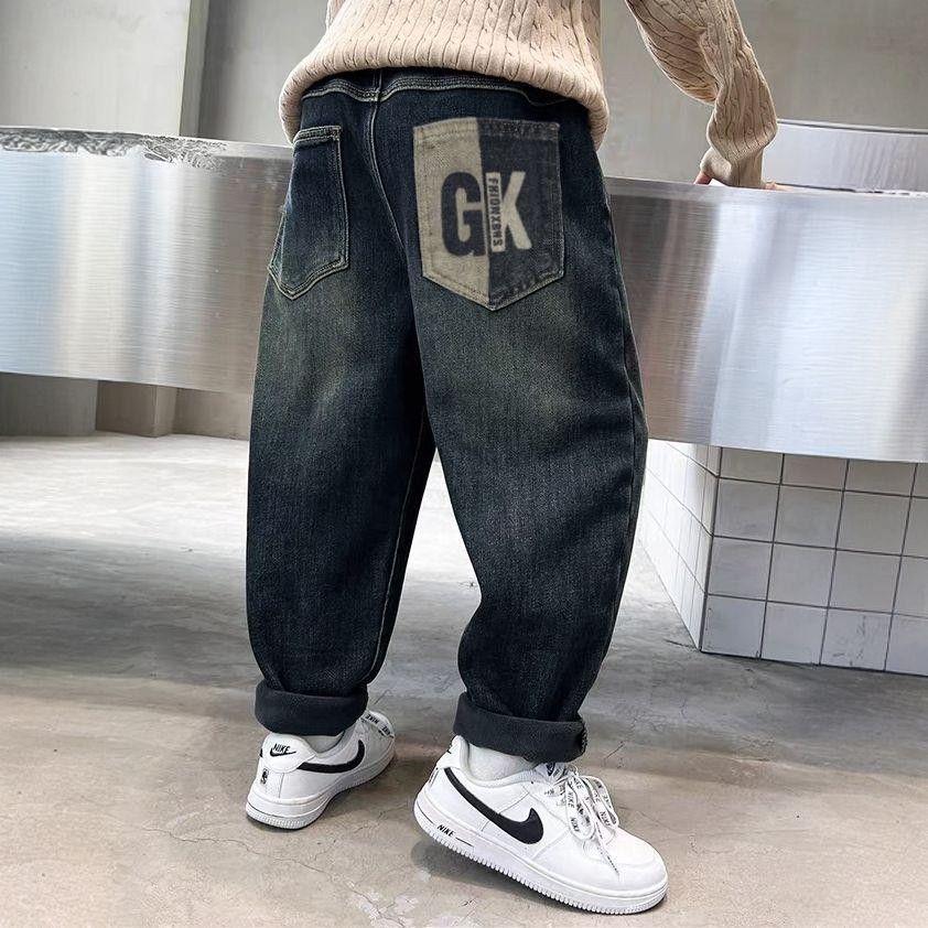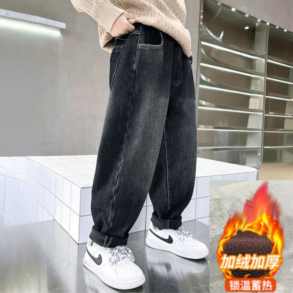 男童加厚一体绒牛仔裤2024秋冬新款中大童儿童韩版宽松时尚休闲裤