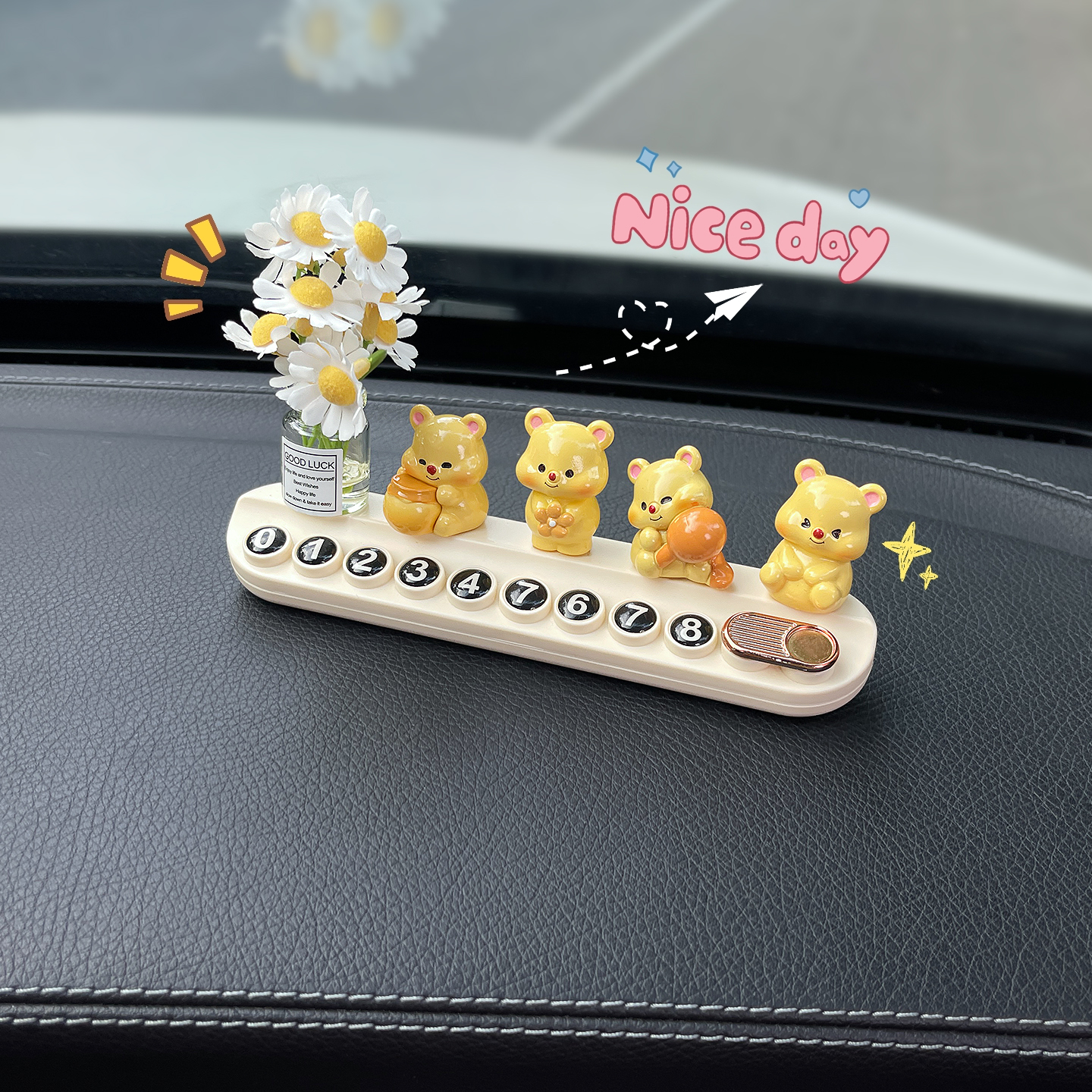 创意可爱公仔汽车临时停车号码牌车载移车挪车电话牌车内装饰摆件