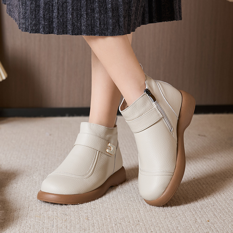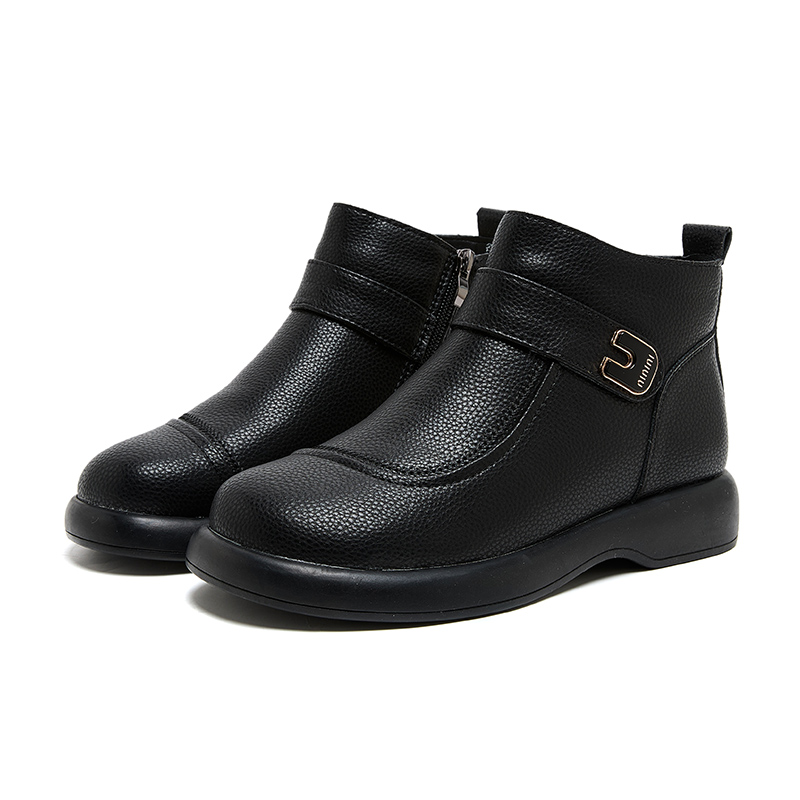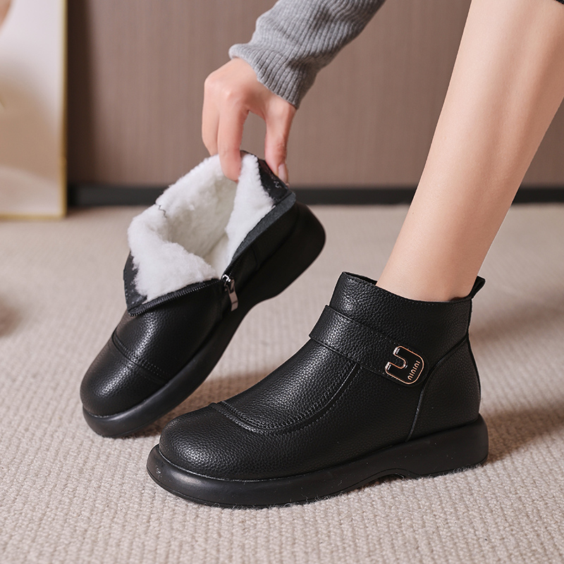 真皮短靴2024冬妈妈鞋棉鞋加绒保暖皮鞋中老年女鞋软底软面奶奶鞋