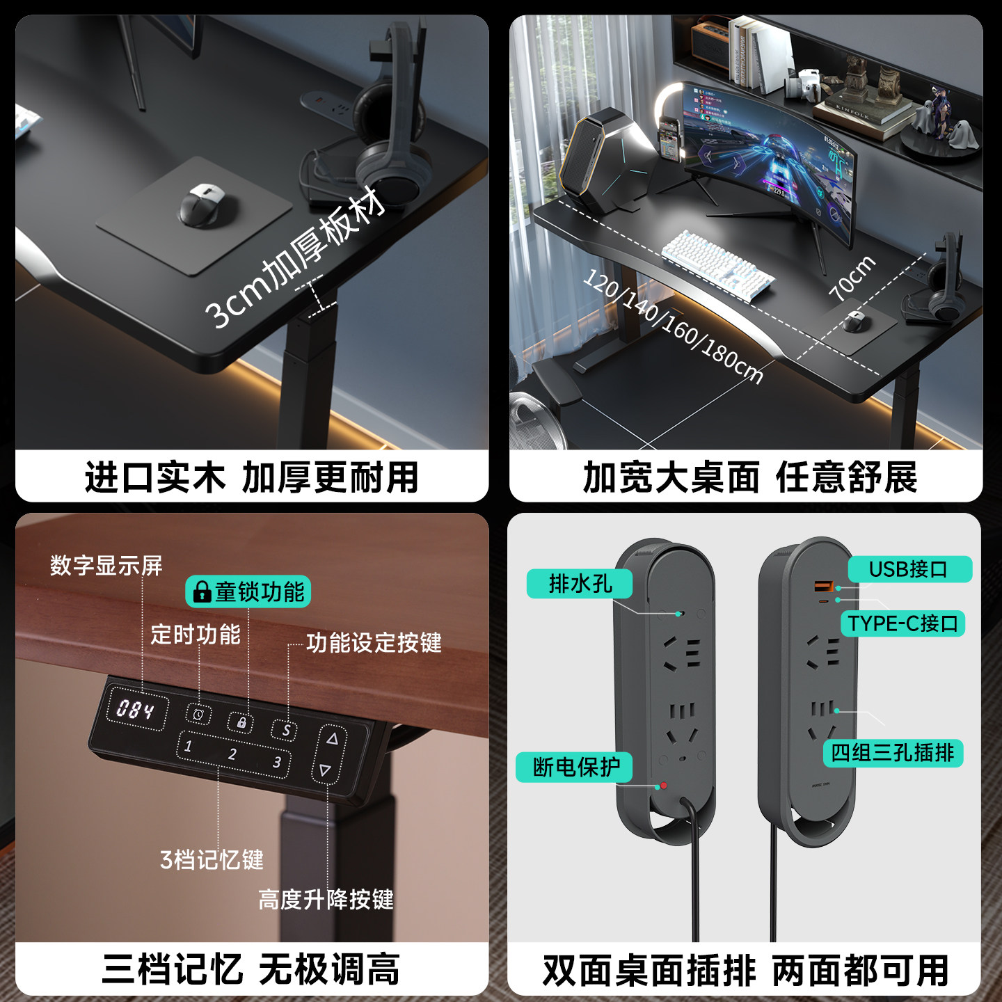 苏木源 S3实木电竞桌智能双电机升降电脑桌双人书桌可装机械臂