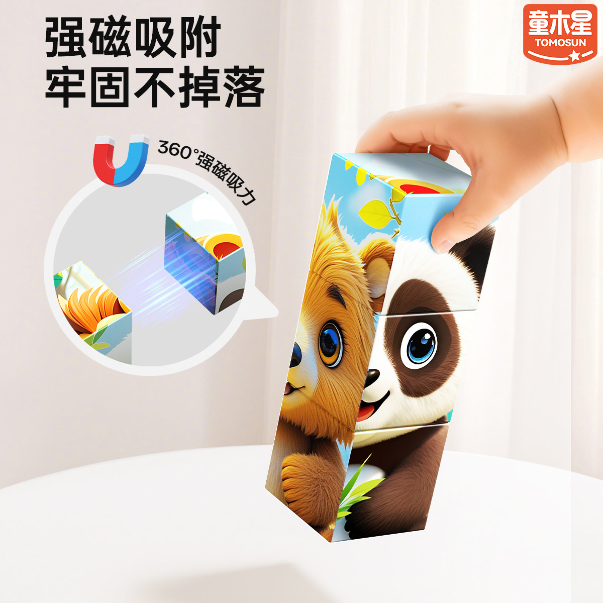儿童磁力拼图益智3到6岁男孩女孩磁性动物立体磁吸六面体积木玩具