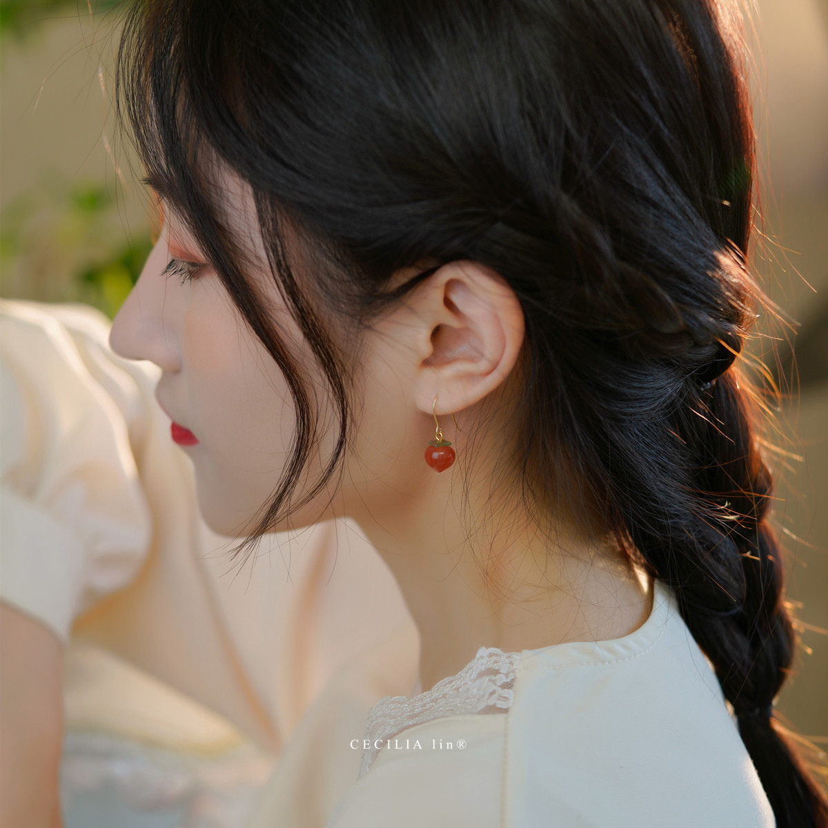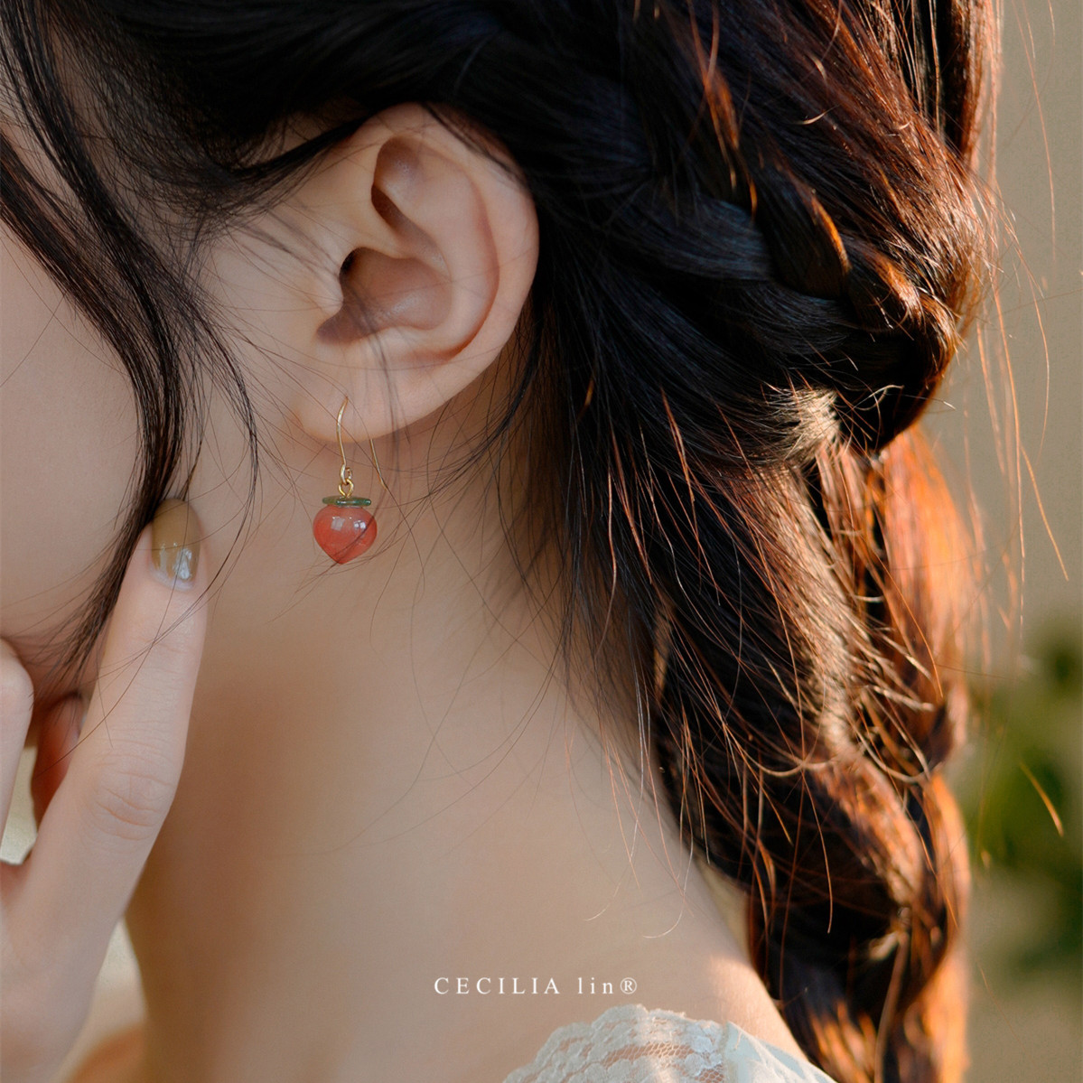 赛赛莉安高品质南红玛瑙桃子14K包金耳环耳夹网红ins小众高级感女