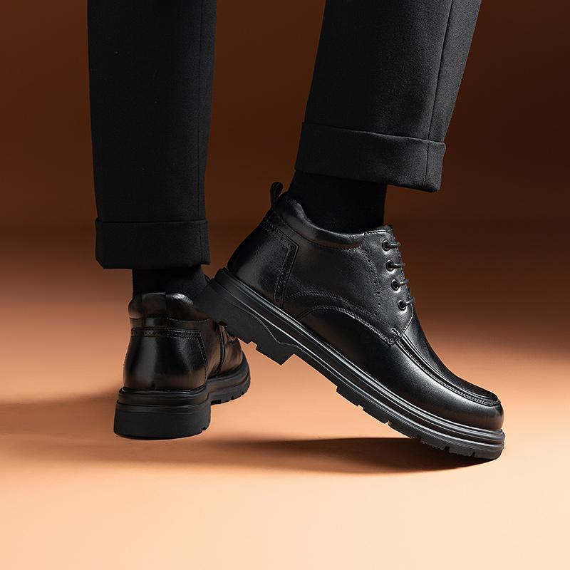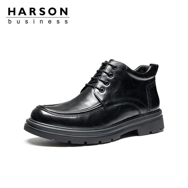 哈森男鞋2025秋冬新款男士马丁靴子加绒保暖真皮鞋手抓纹高帮棉鞋
