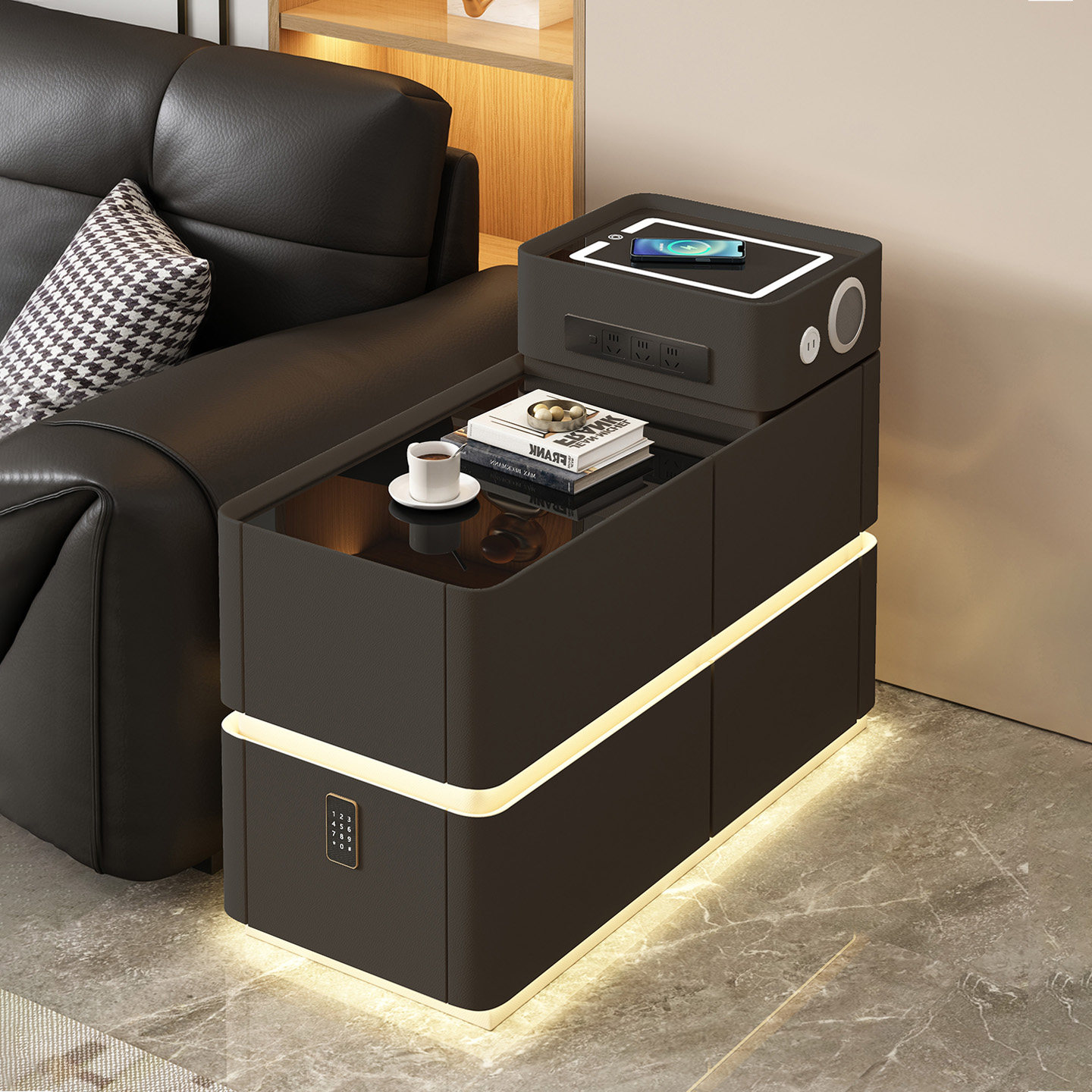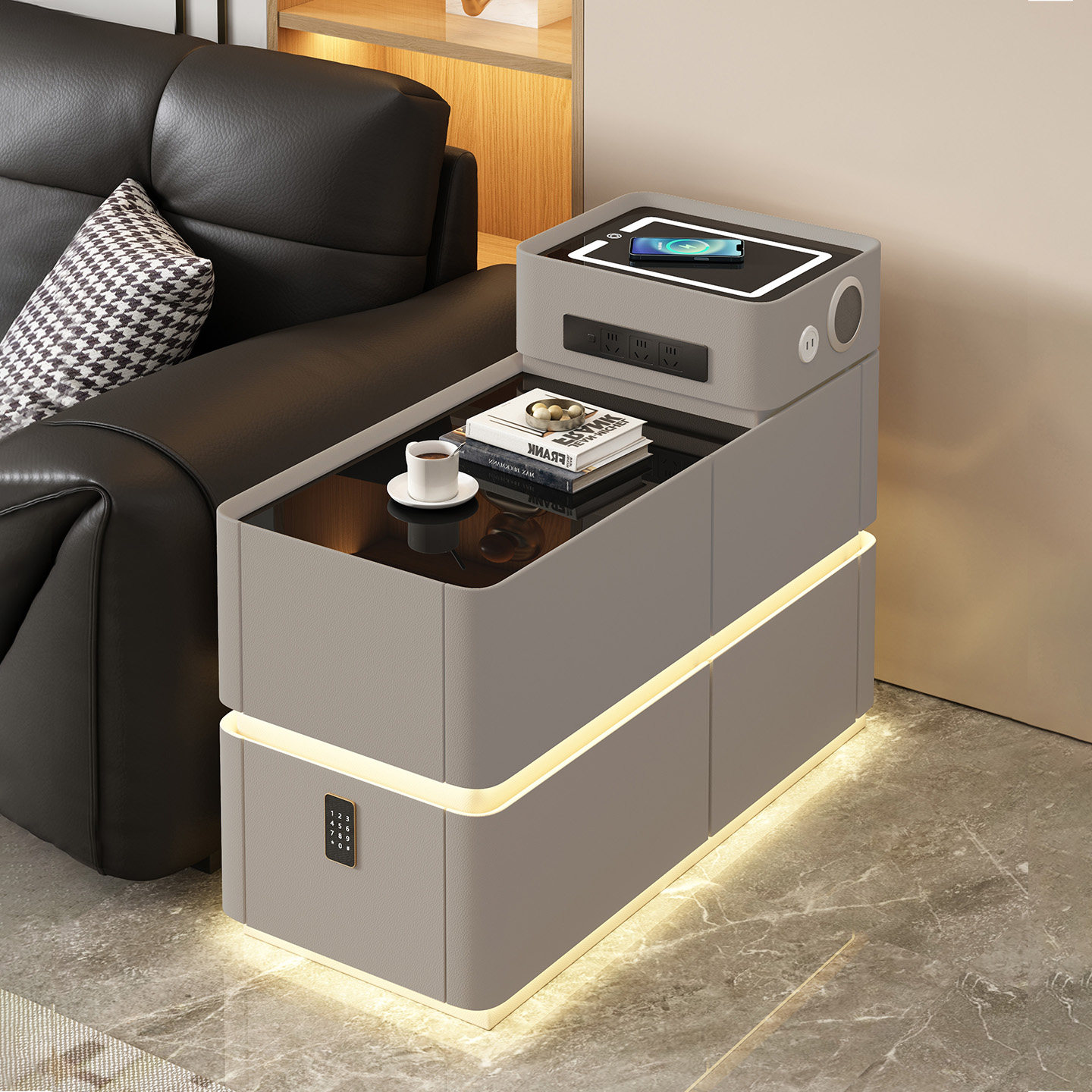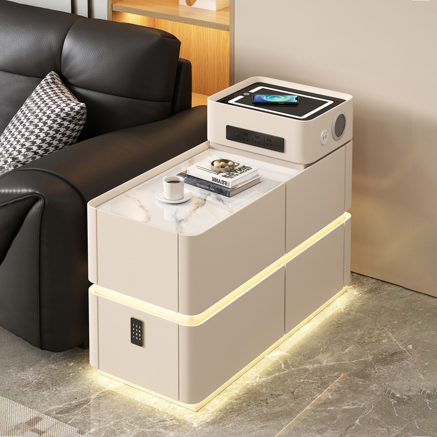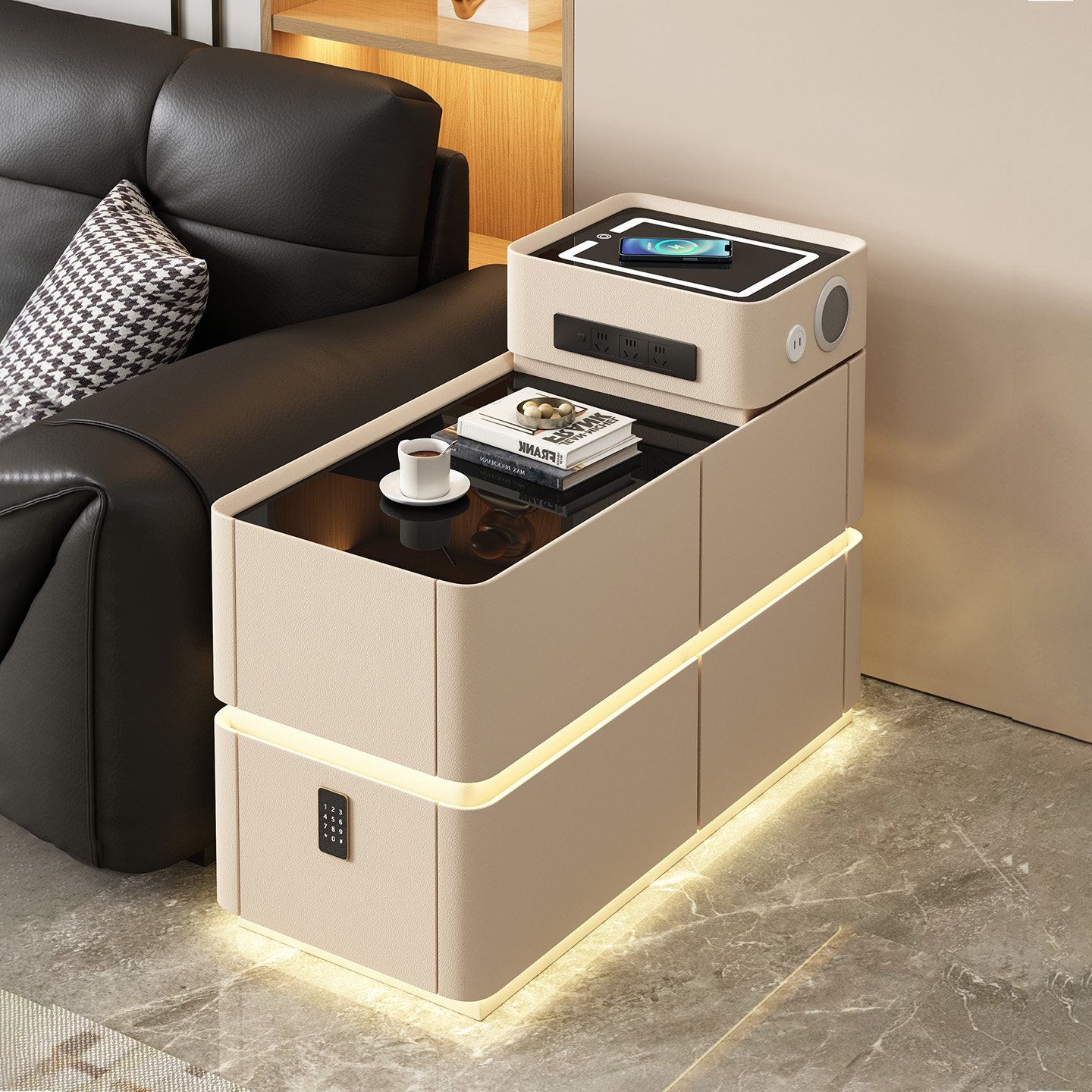 奶油风智能悬浮沙发边柜实木简约现代钢化玻璃带无线充电夹缝边几