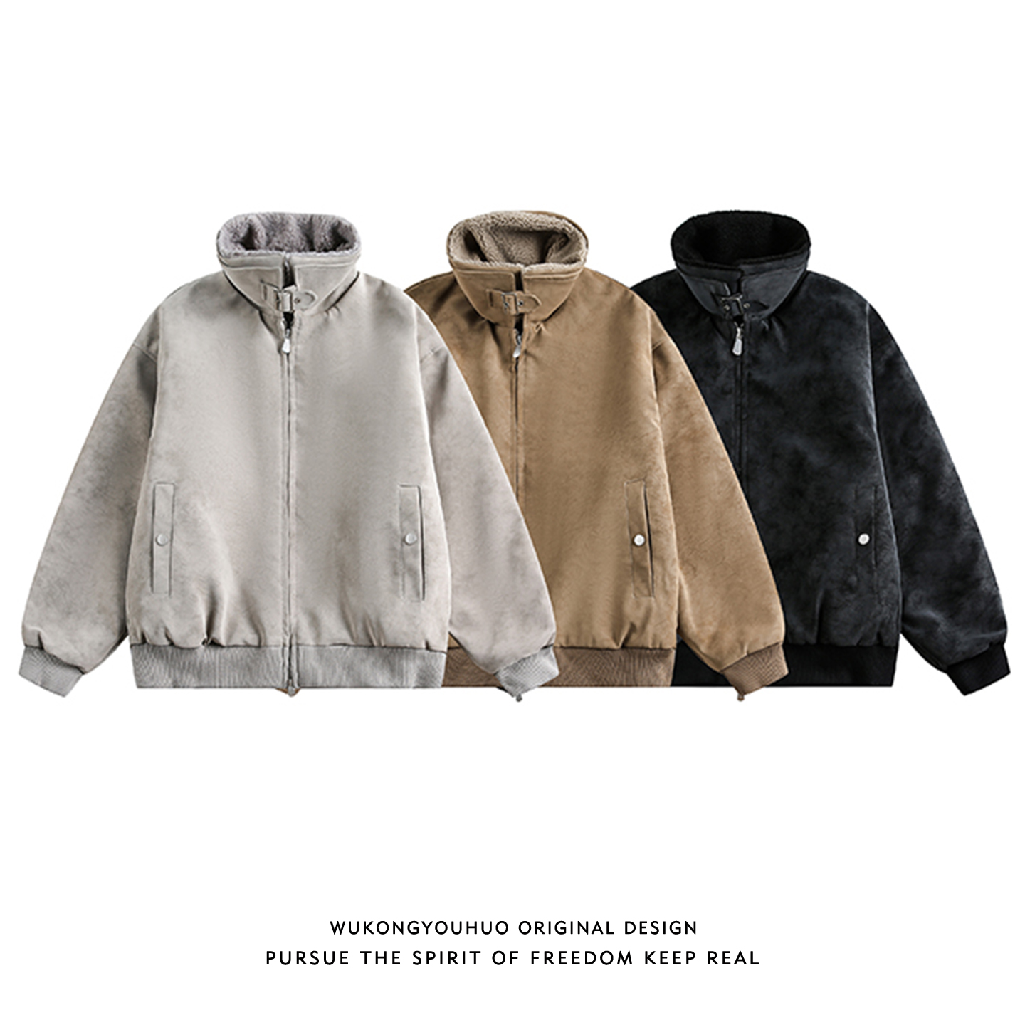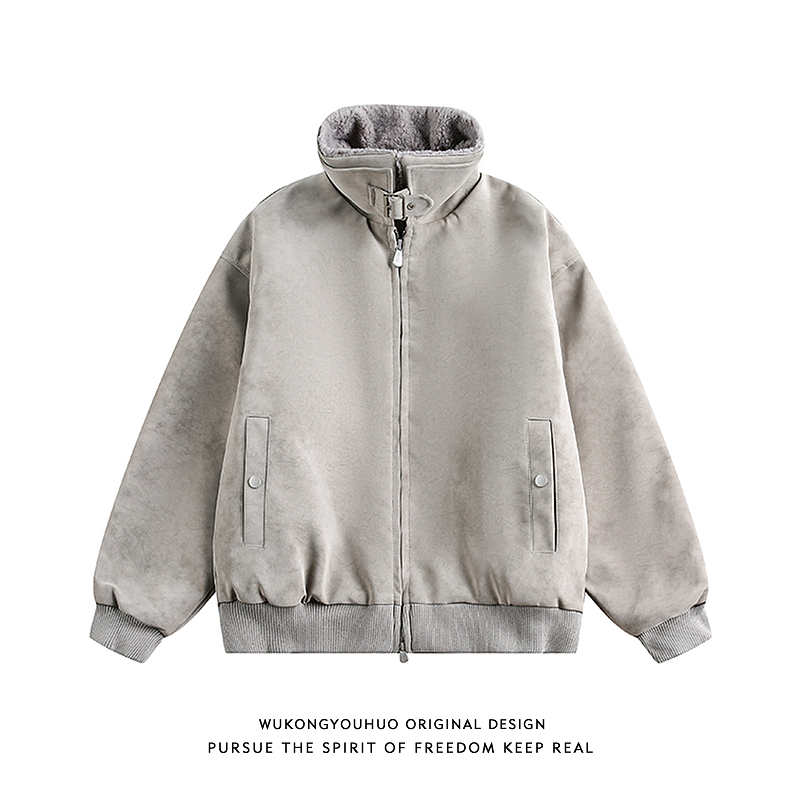 悟空有货冬季潮牌麂皮绒保暖立领棉服男复古情侣百搭休闲棉衣外套