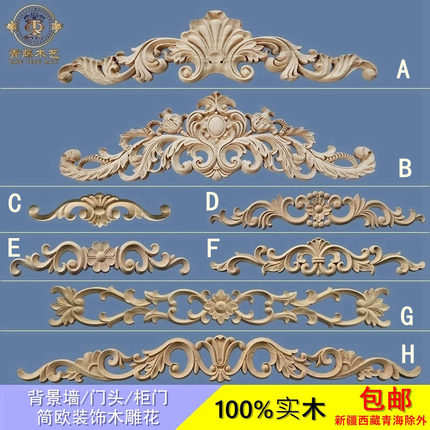 欧式实木雕花贴花中式东阳木雕花角花客厅装饰花背景墙柜门门心花