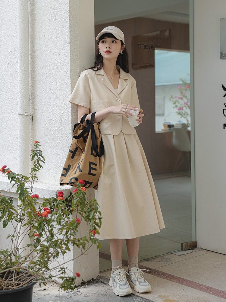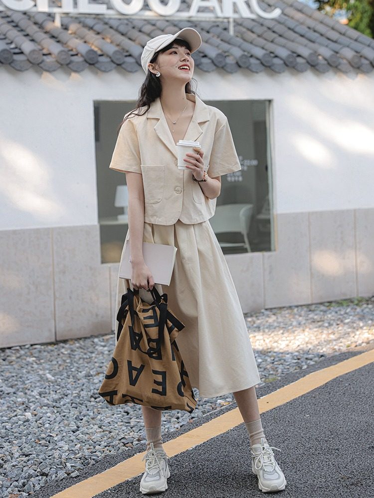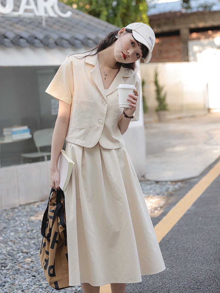 前程纸样女装西装两件套裙子春夏短袖显瘦职业韩系套装半身裙730