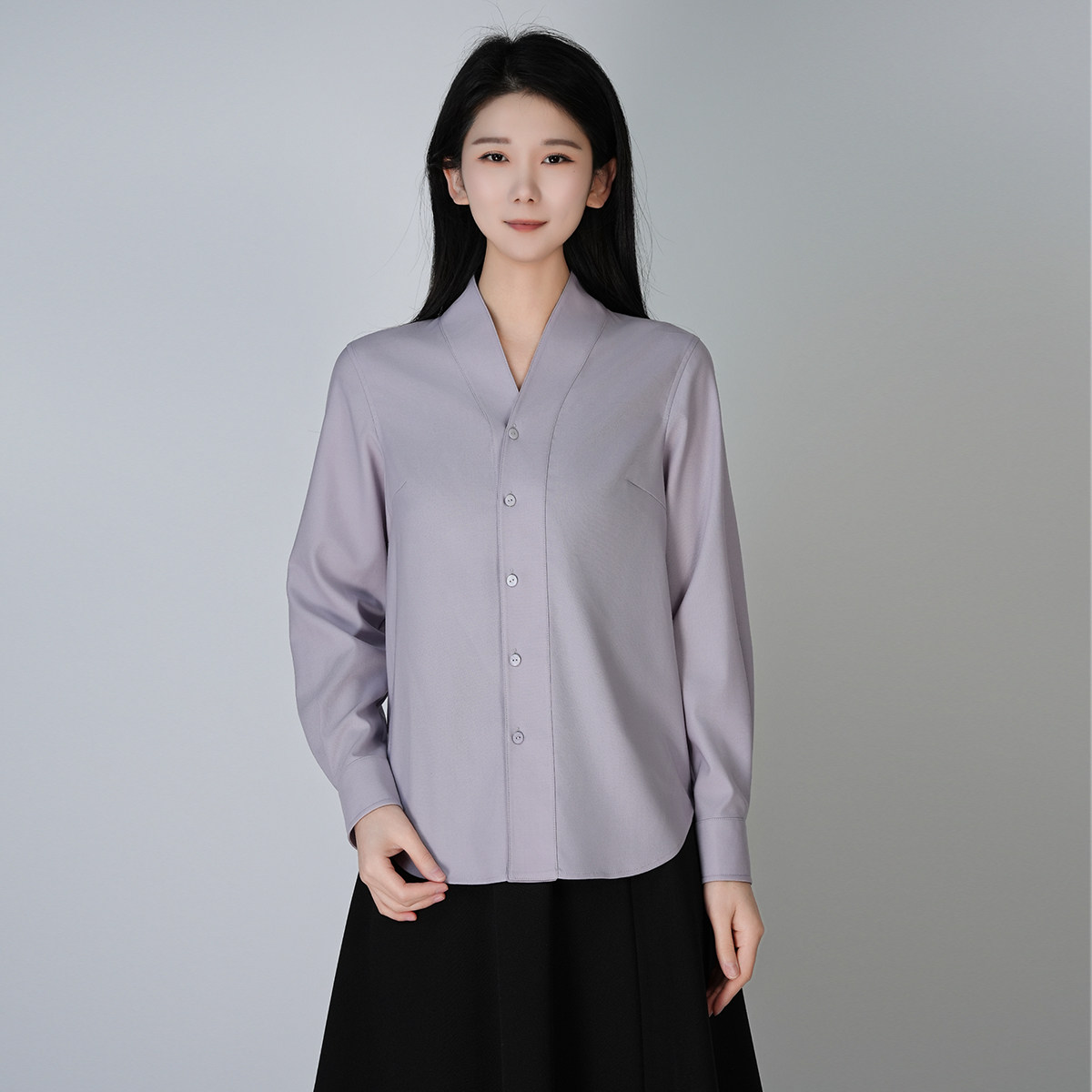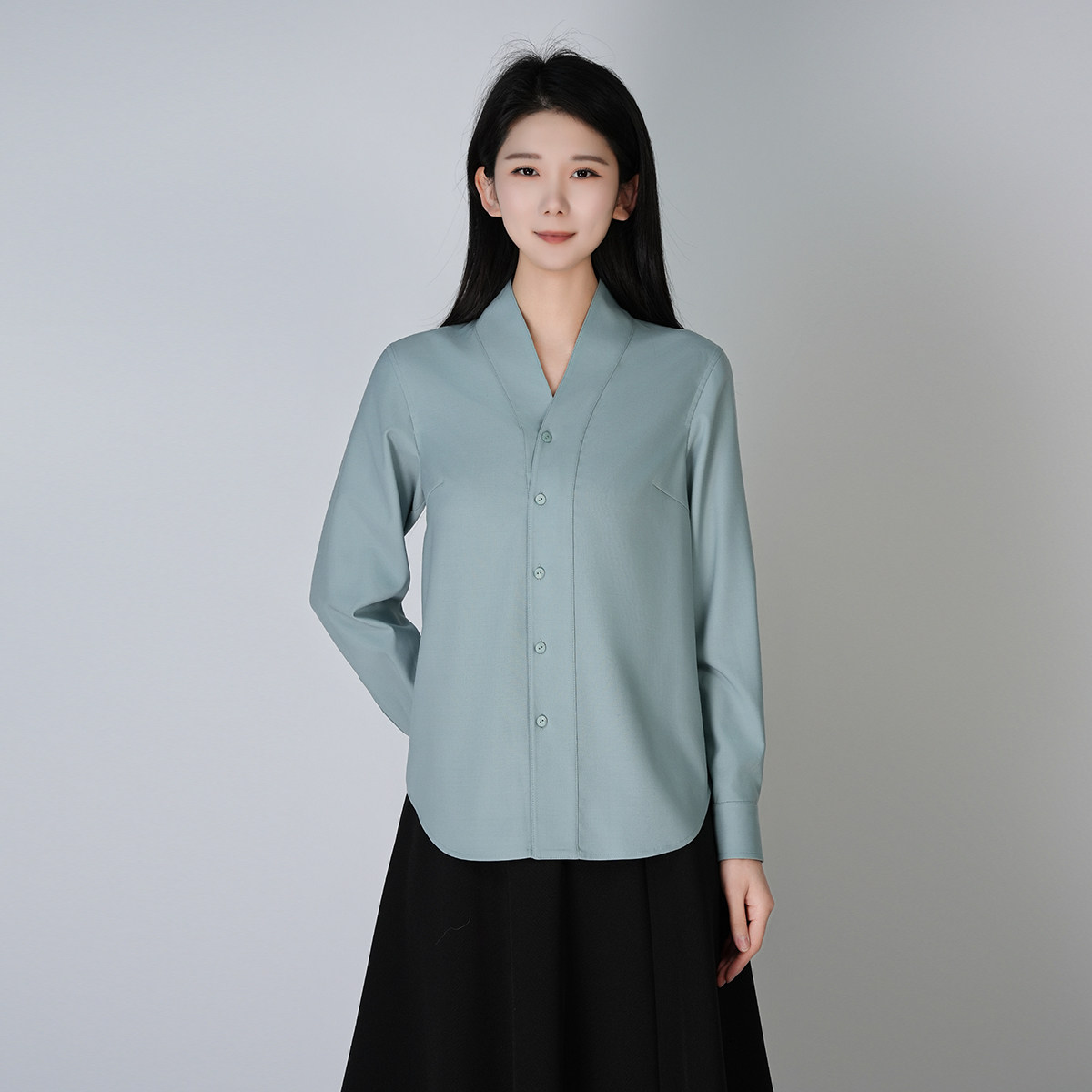 浒城古娘新款绵羊毛宽松通勤百搭长袖新中式国风衬衫上衣女款春秋