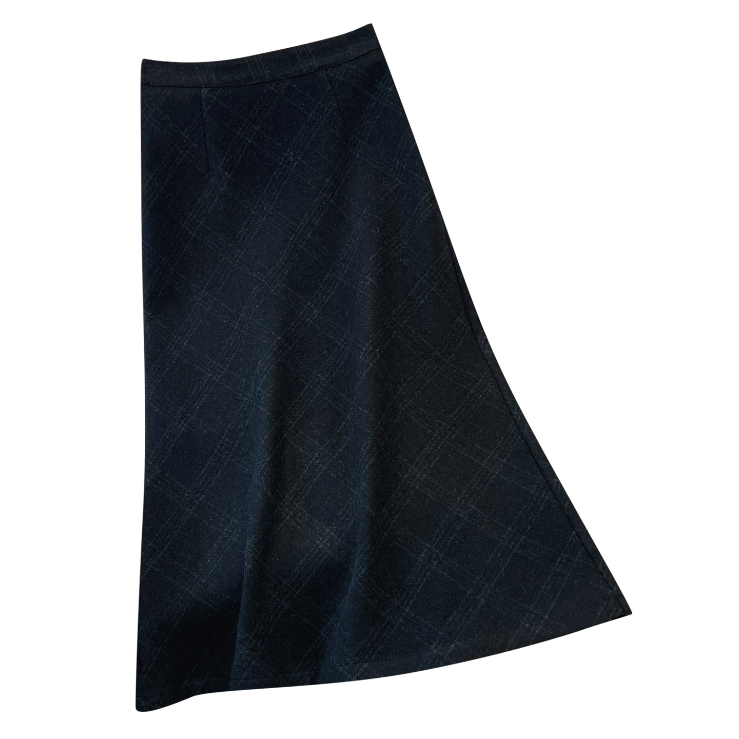 超好看毛呢格纹半身裙女2025秋冬季新款高腰a字加厚包臀直筒裙子