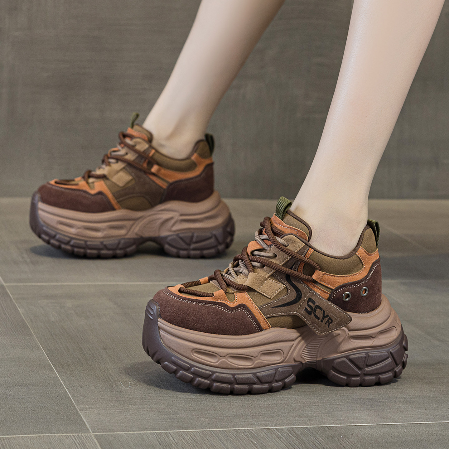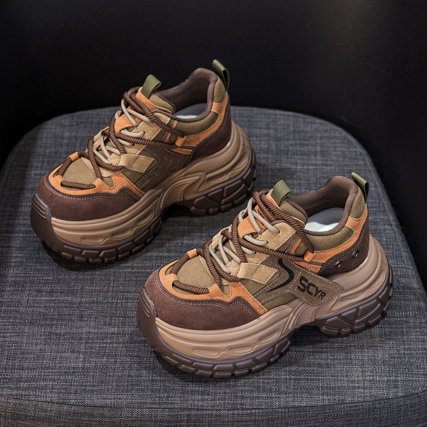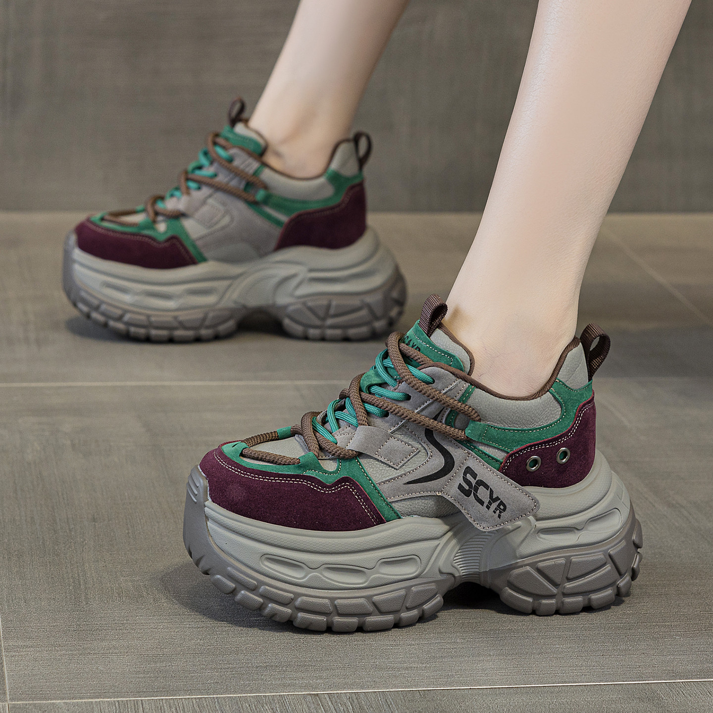 欧货复古真皮老爹鞋女2026春季新款高级感厚底内增高运动休闲单鞋