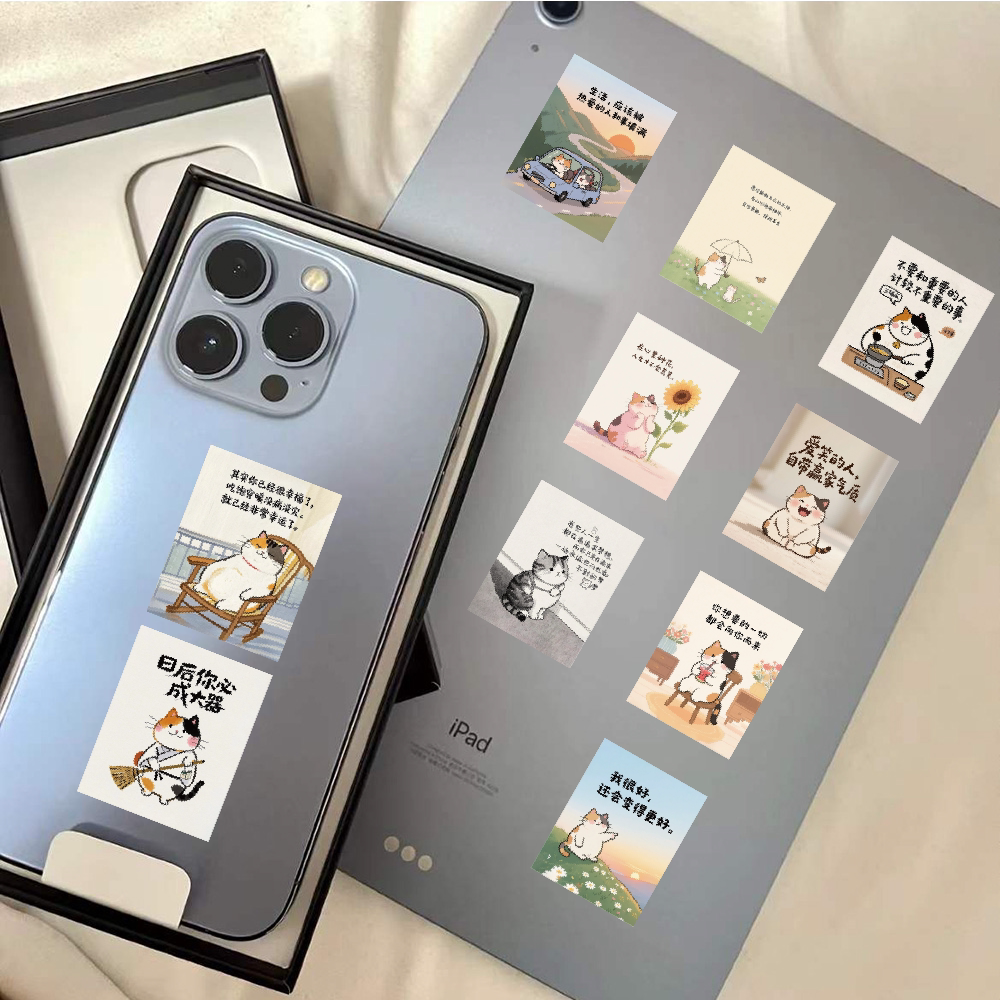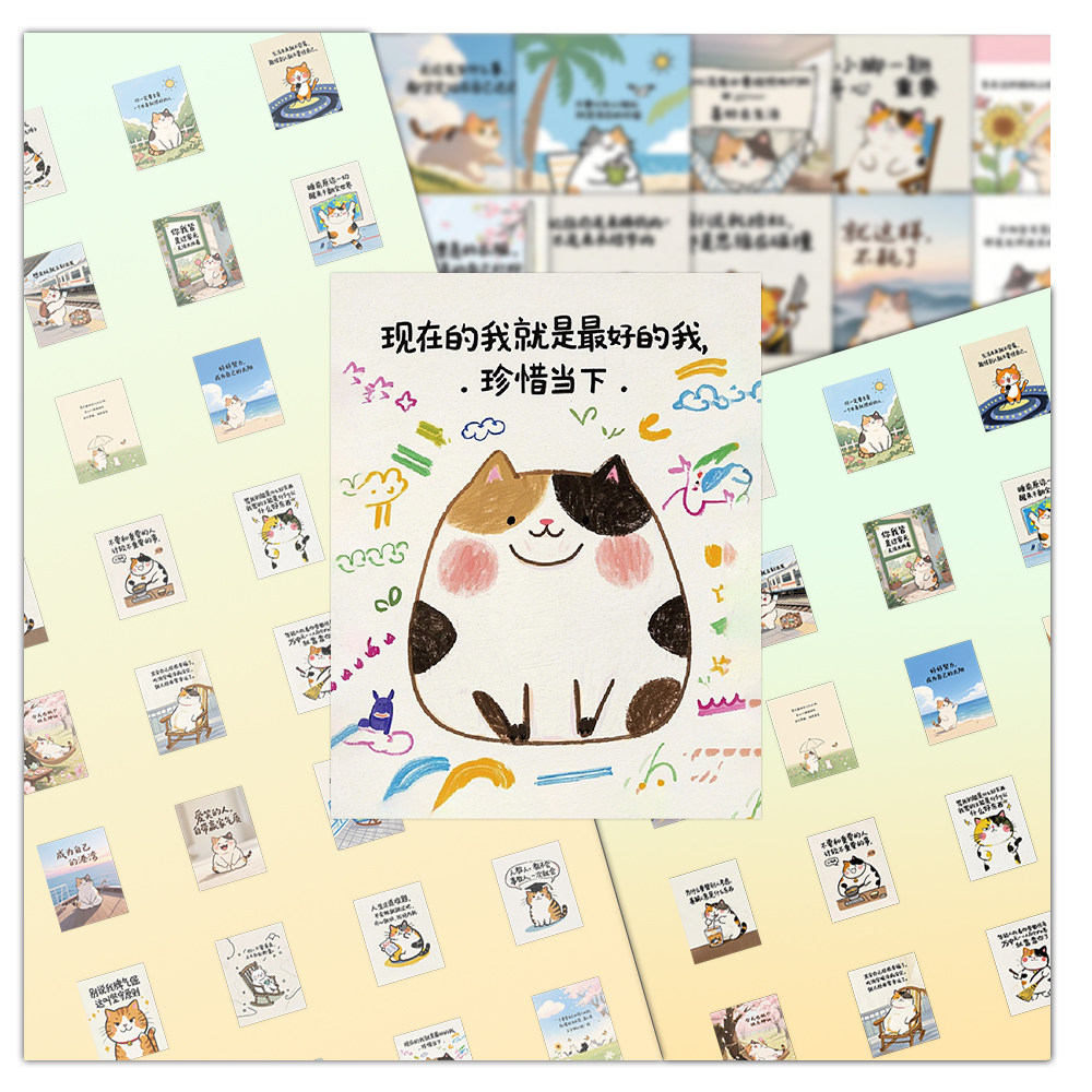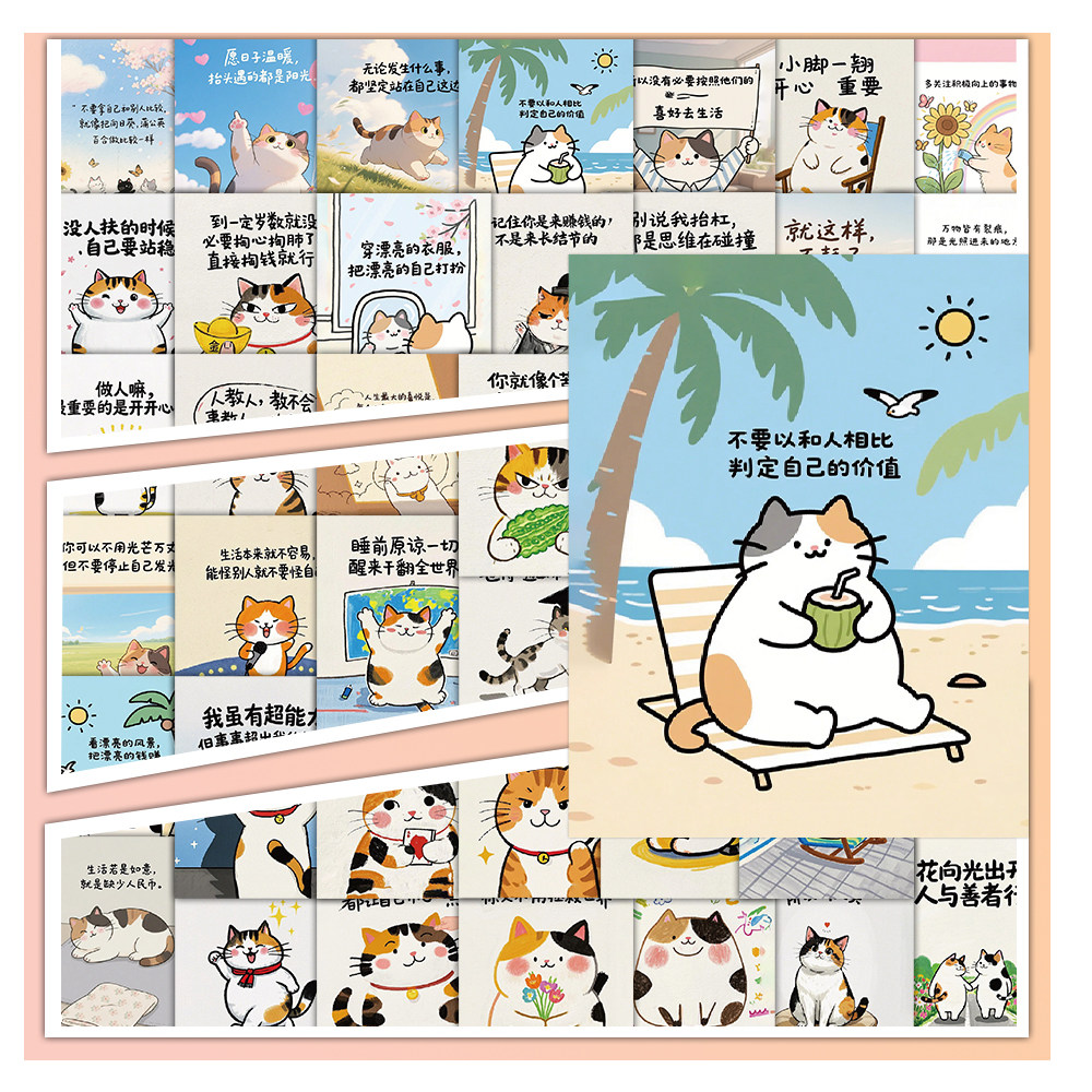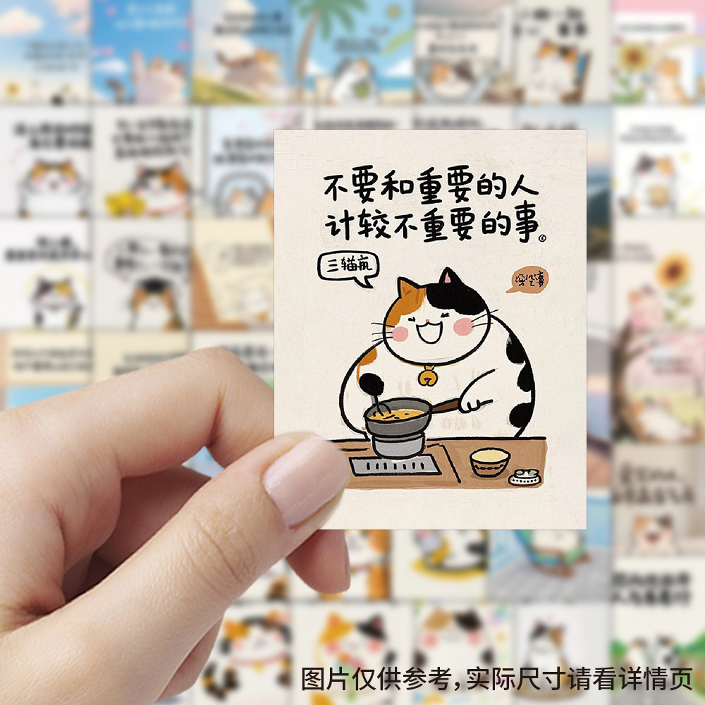 80张猫咪哲学贴纸卡通文字励志创意手账笔记本行李箱防水素材标签