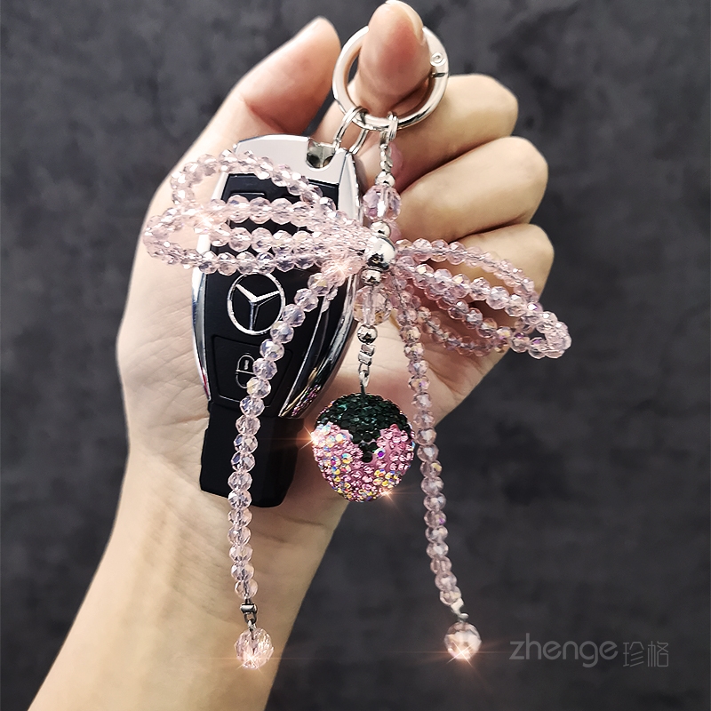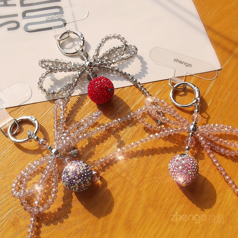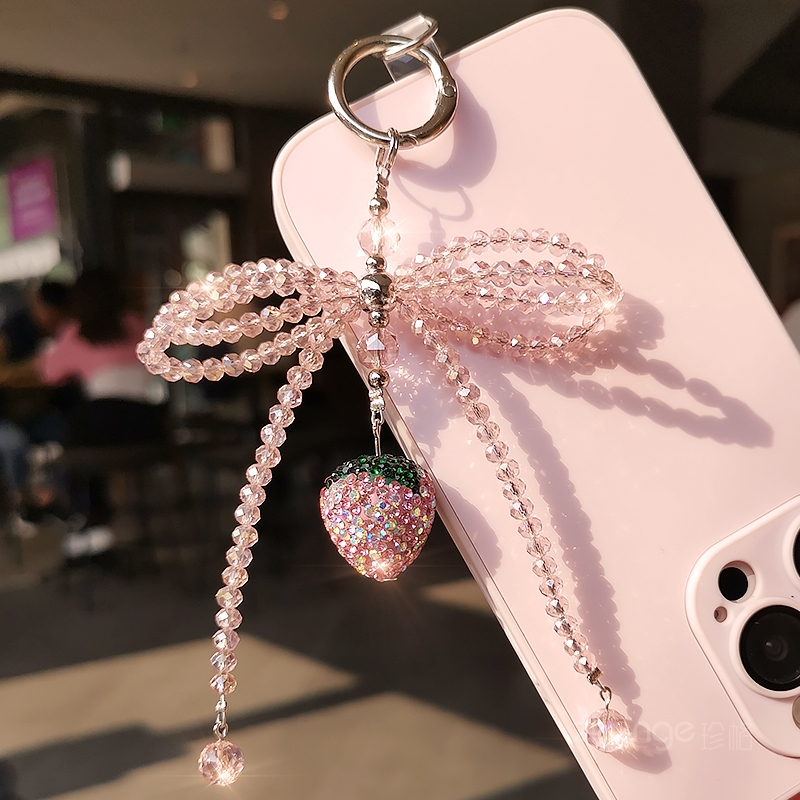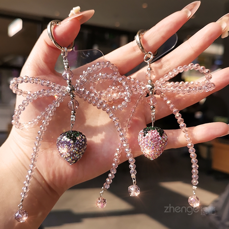 满钻草莓水晶蝴蝶结挂件女高级感手机壳挂饰精品手作串珠好看背包包挂吊坠小清新ins风高端小众饰品新款