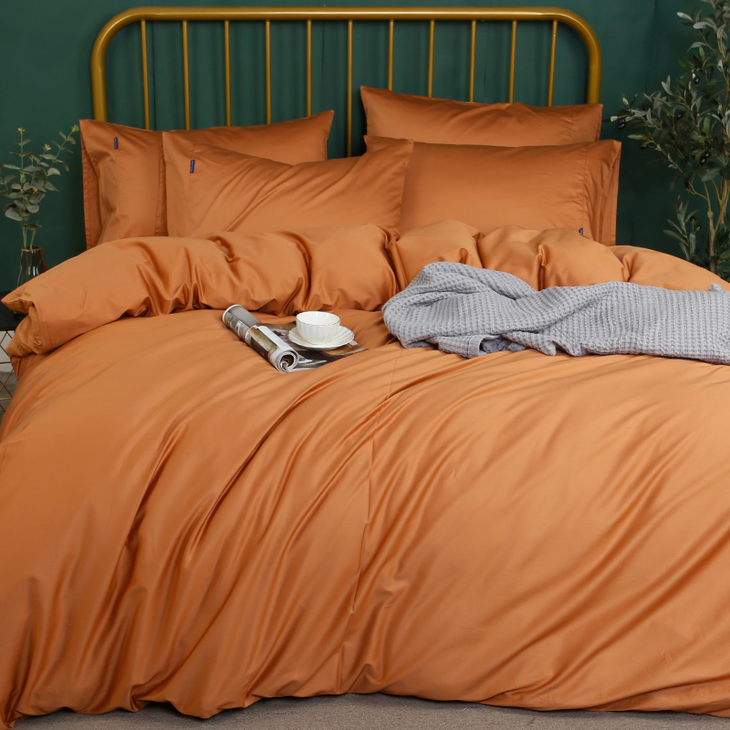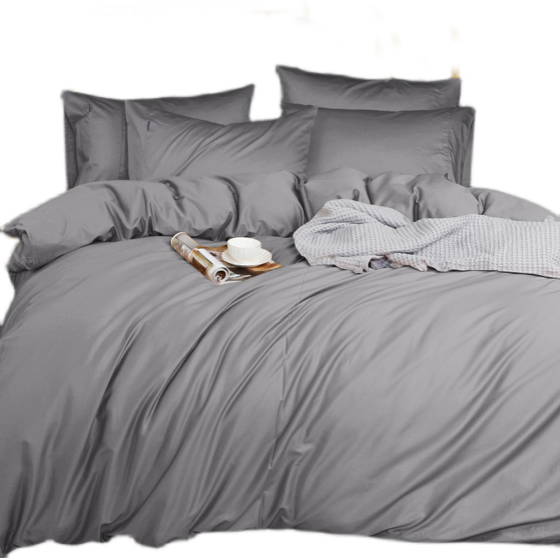 外贸100支纯棉四件套全u棉长绒棉贡缎高级感纯色床上三件套件床品