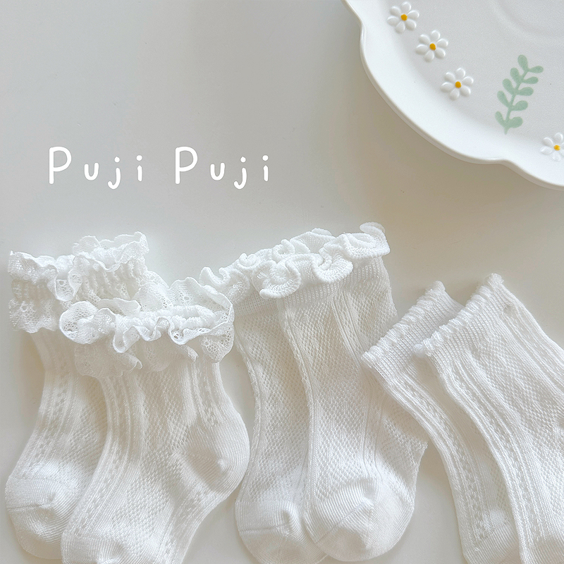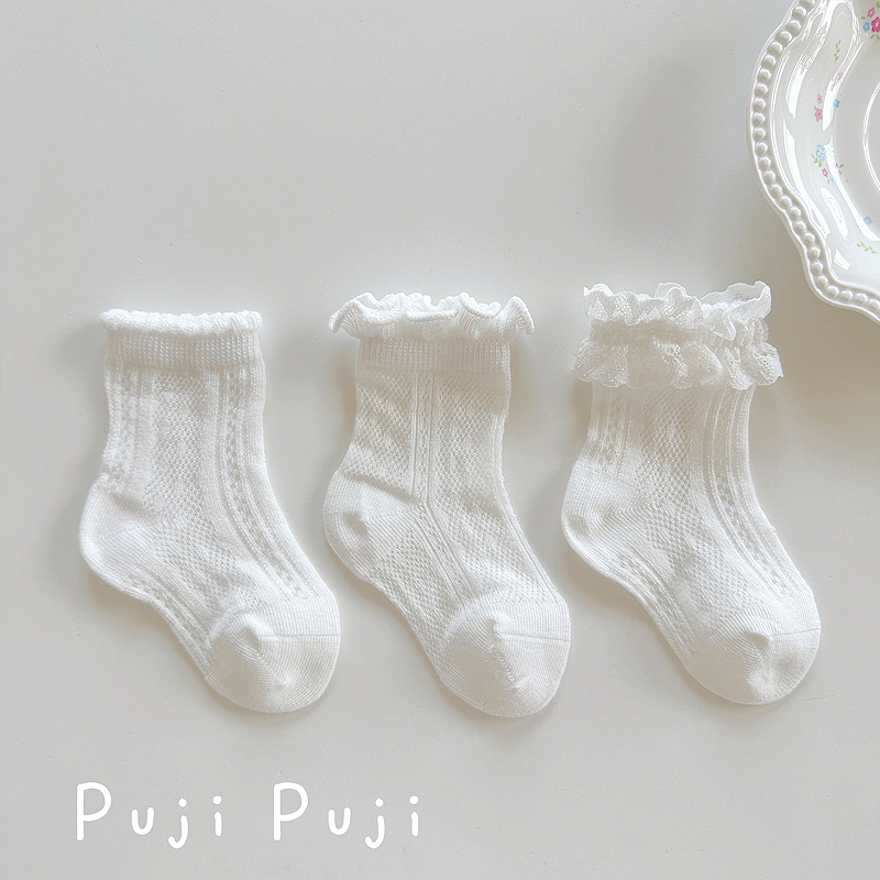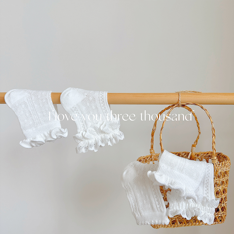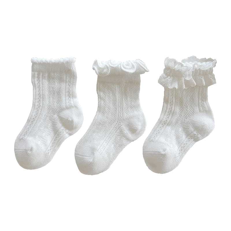 宝宝袜子夏季薄款纯棉网眼袜白色婴儿短袜无骨不勒女童花边公主袜