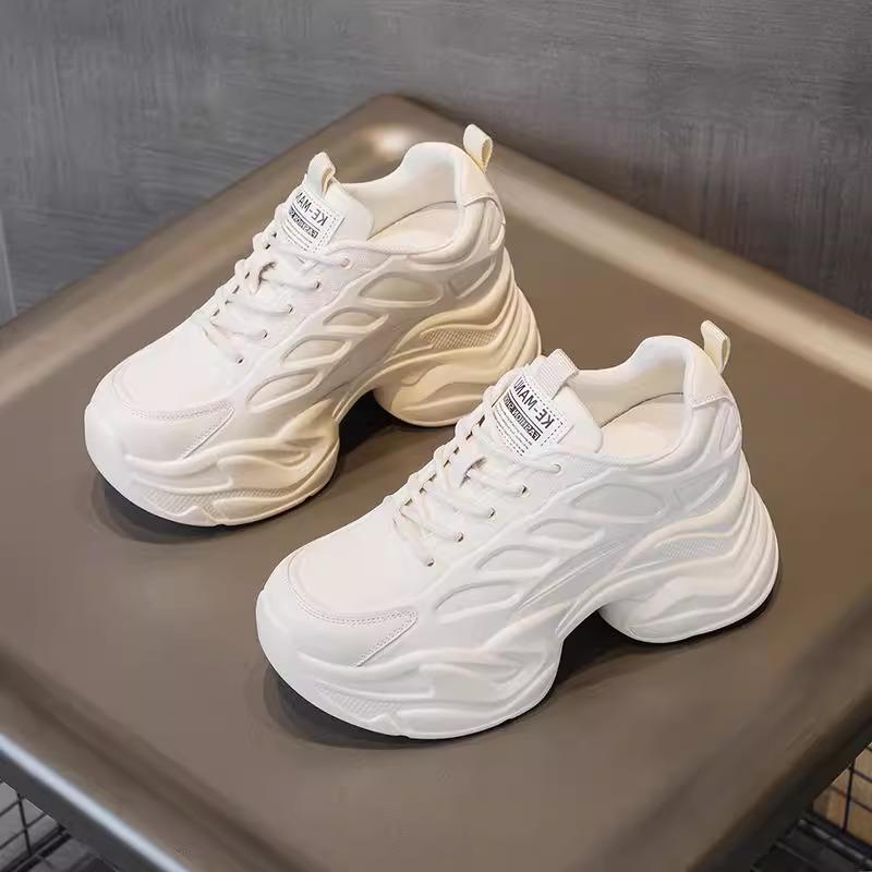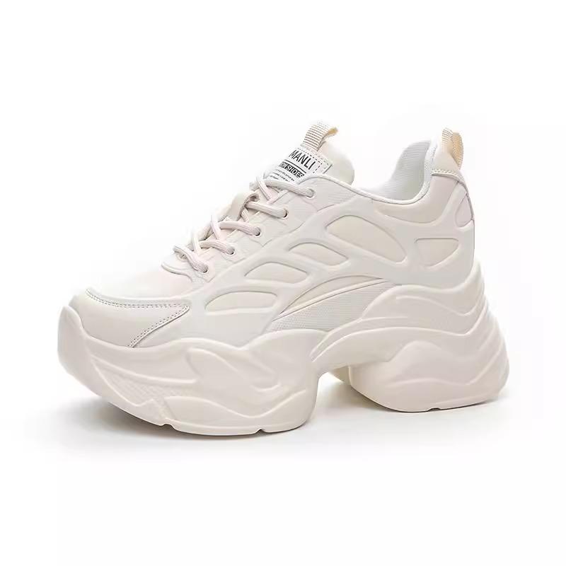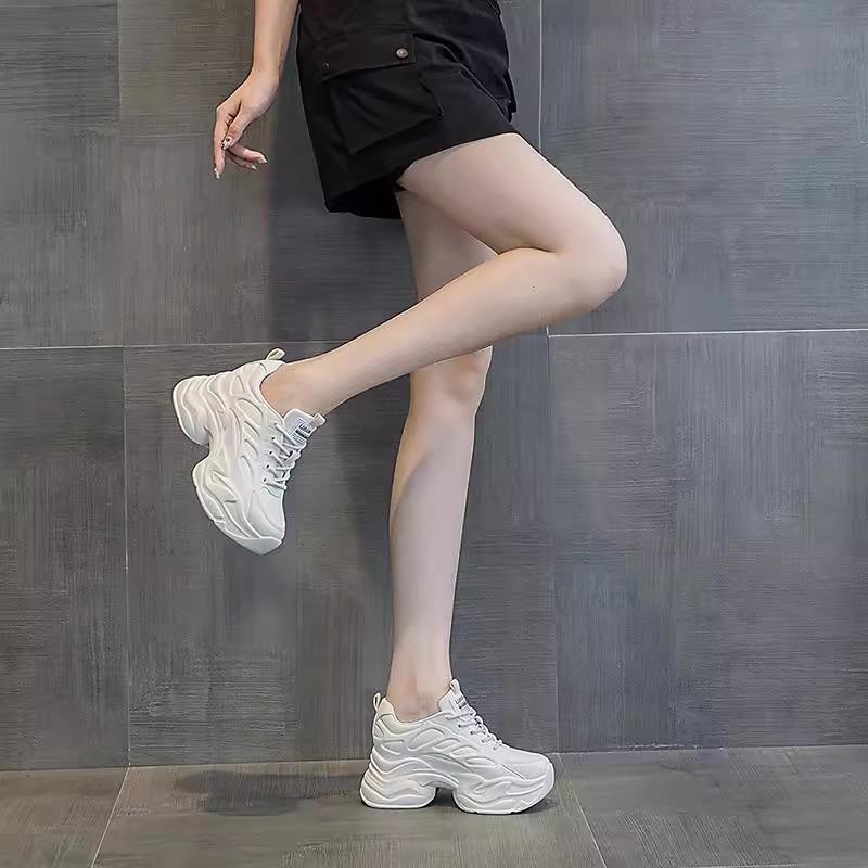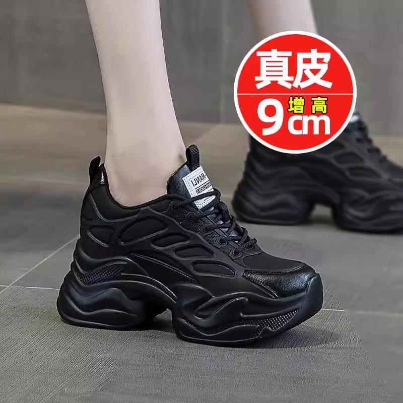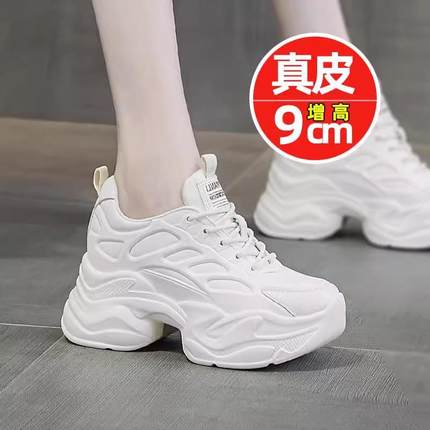 2025春季新款厚底内增高老爹鞋女百搭轻便9公分真皮休闲运动女鞋