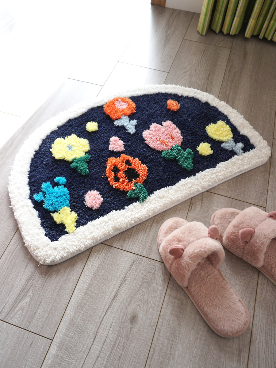 设计师创意花卉田园门厅脚垫半圆浴室吸水小地垫卫浴卧室柔软地毯