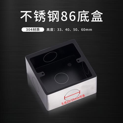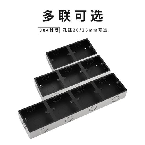 304不锈钢86型开关插座明装底盒通用加厚墙壁面板暗盒双联金属合1