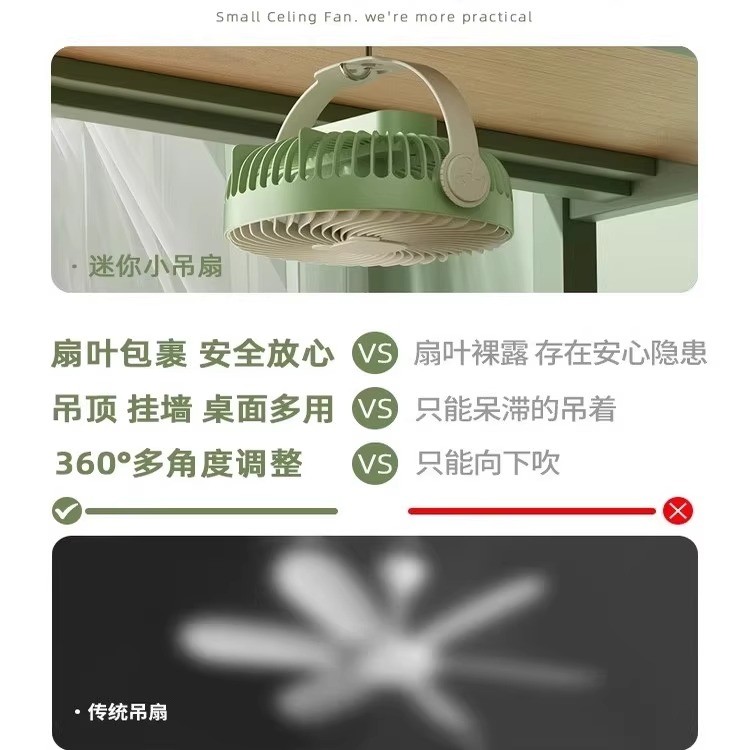 大学生住校生用品宿舍好物可充电静音小风扇床上吊扇开学神器