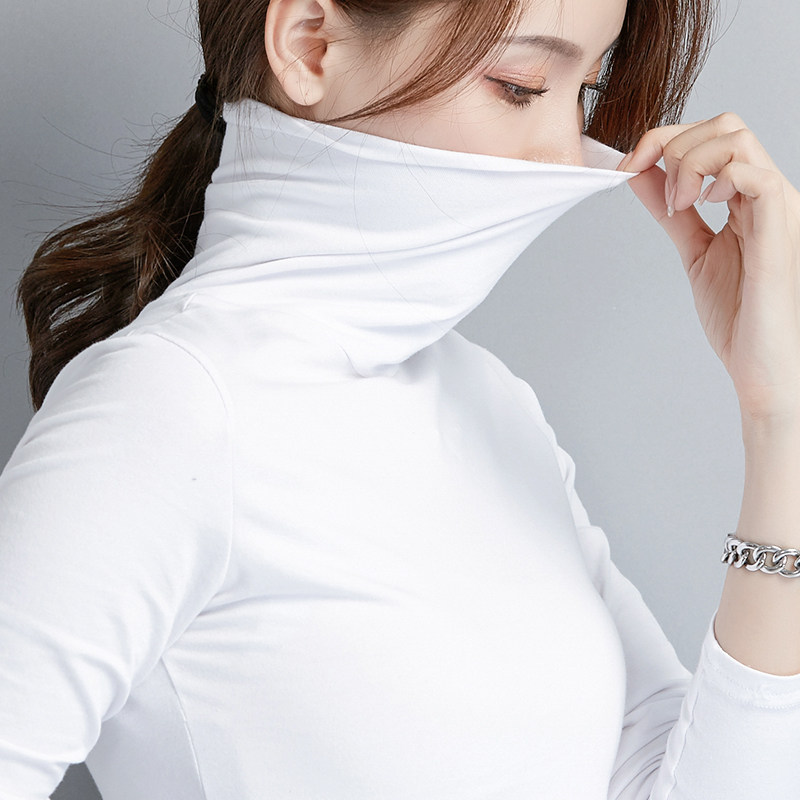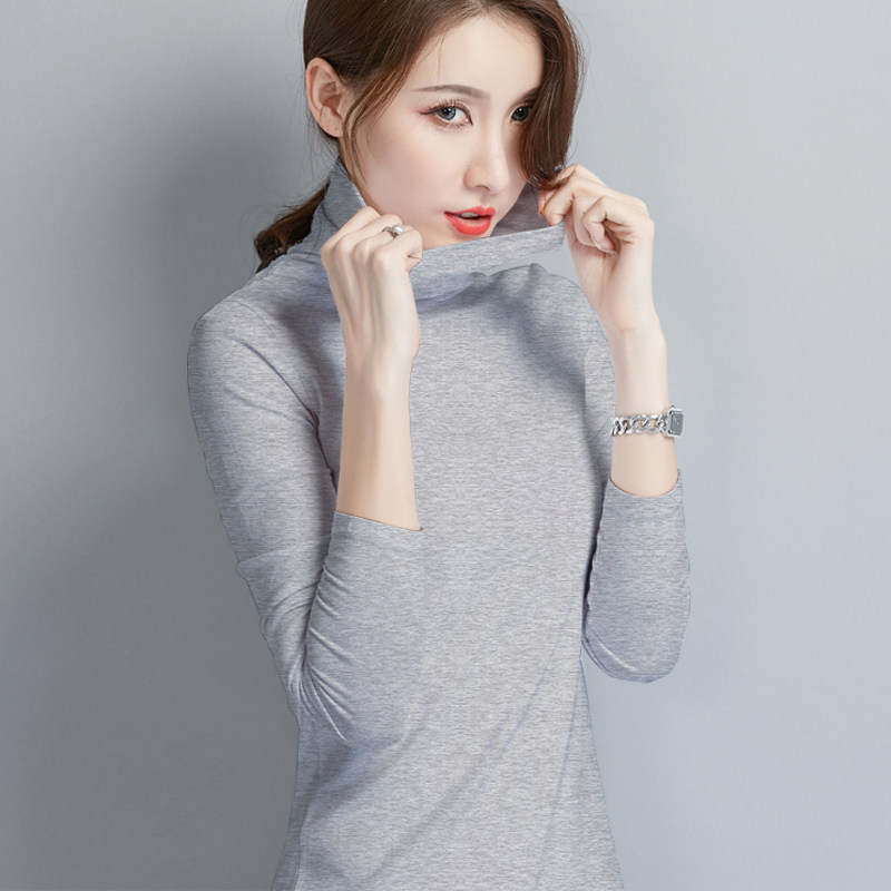 纯棉浅灰色高领打底衫女秋冬内搭2025新款堆堆领长袖t恤春秋薄款
