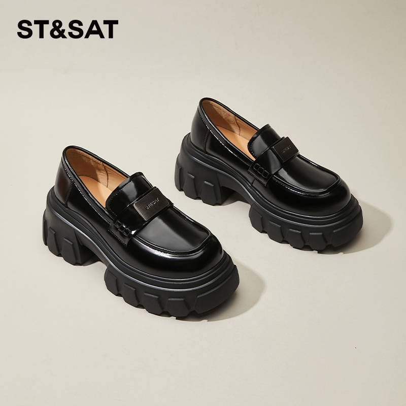 星期六小皮鞋女2025新款英伦风百搭厚底增高乐福鞋女高跟单鞋
