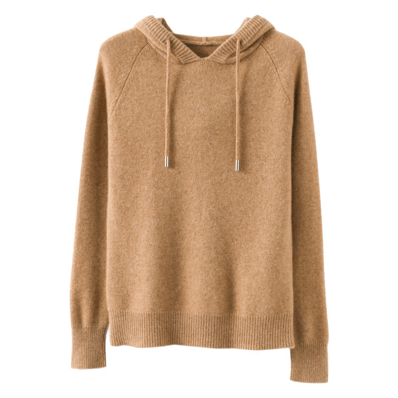 新款连帽长袖针织衫女套头毛衣宽