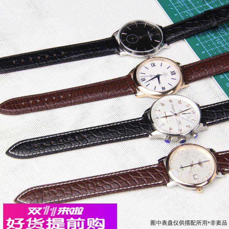 适配原厂真皮手表带男适用于浪琴天梭欧米茄美度表带女20棕黑色鳄