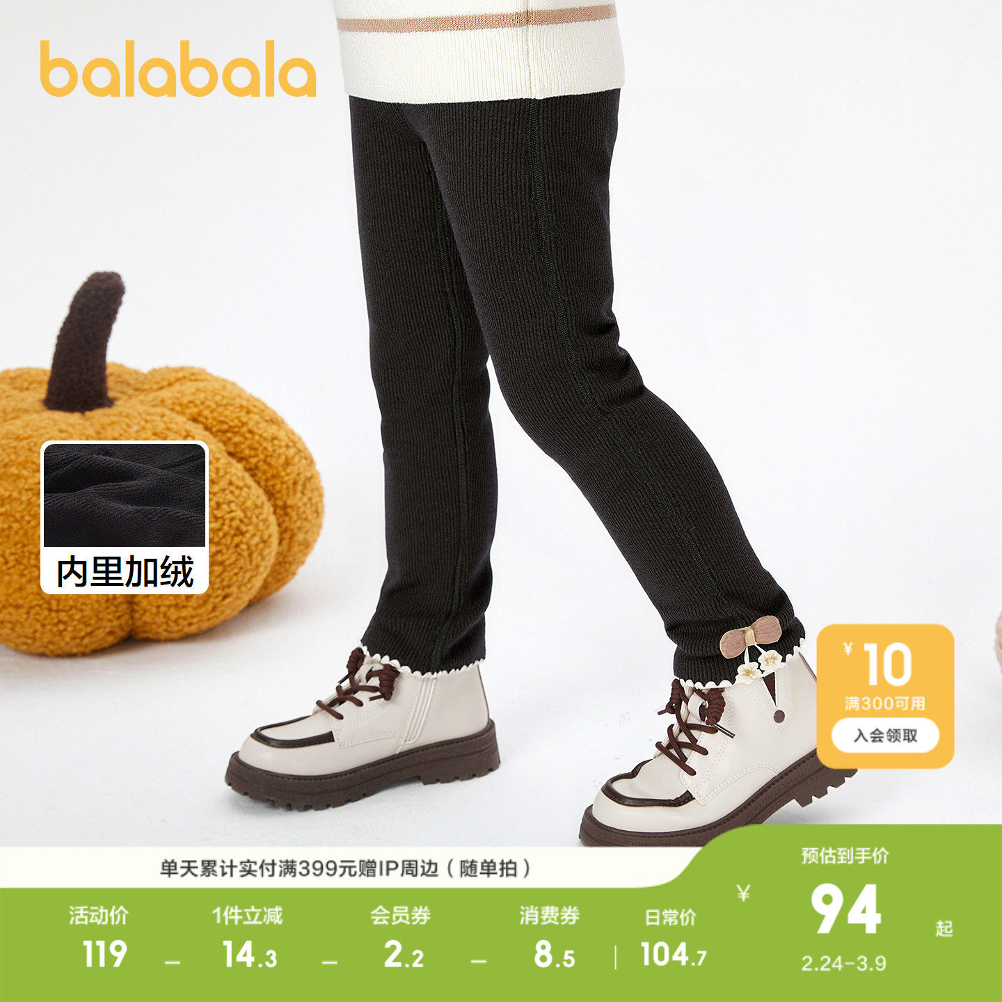 巴拉巴拉打底裤女童加绒裤子甜美