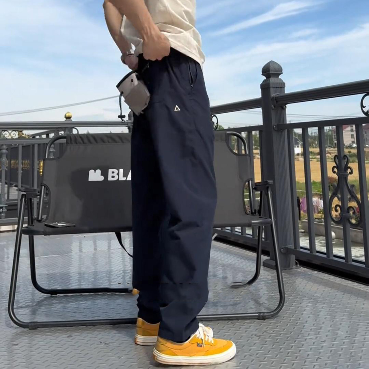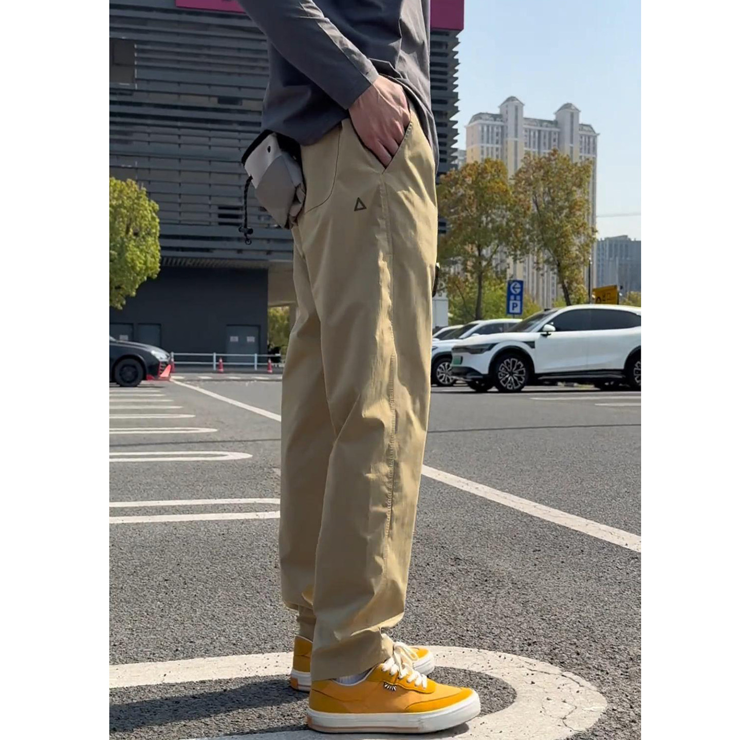 户外三角标休闲裤男宽松直筒裤秋冬季登山运动裤加厚加绒裤子