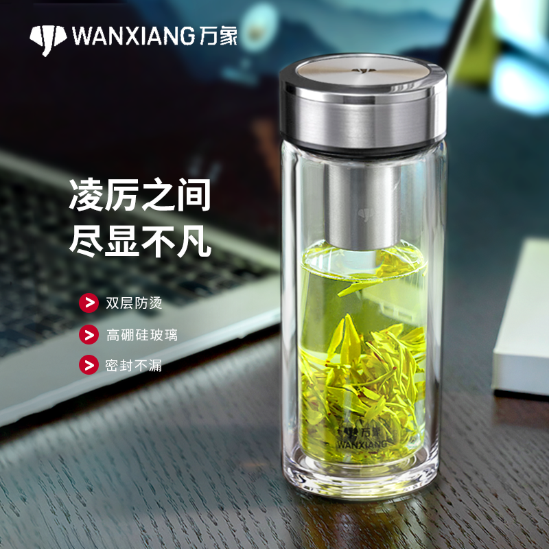 万象双层玻璃杯便携水杯隔热车载泡茶男女大容量高档杯子V48/V49