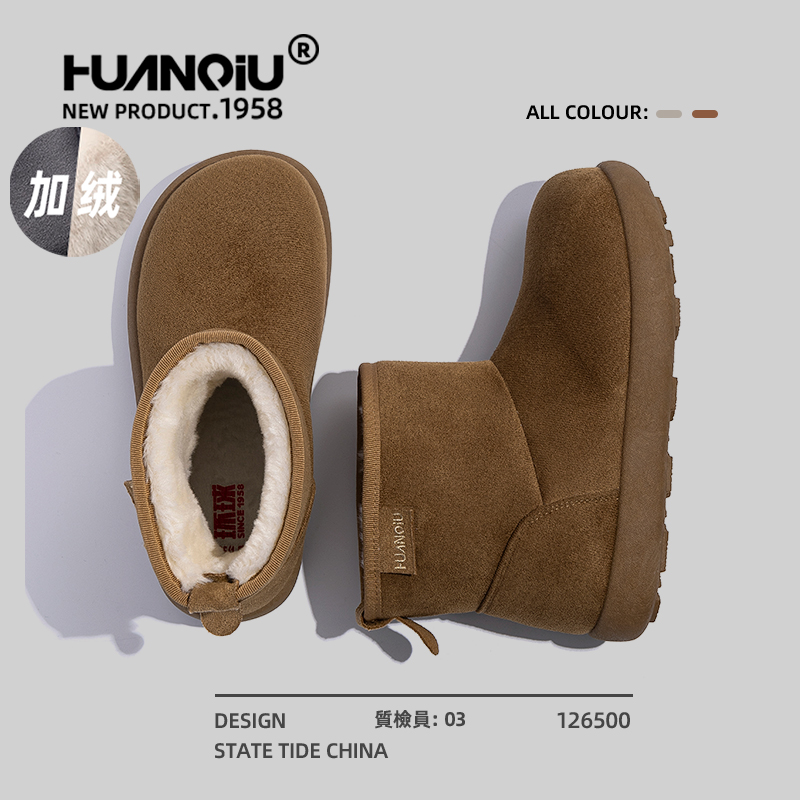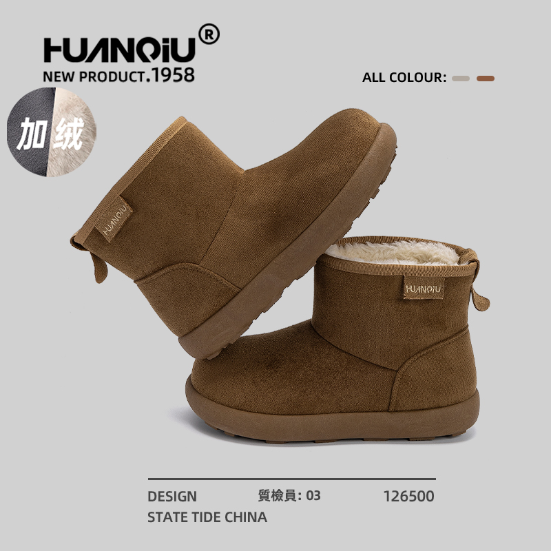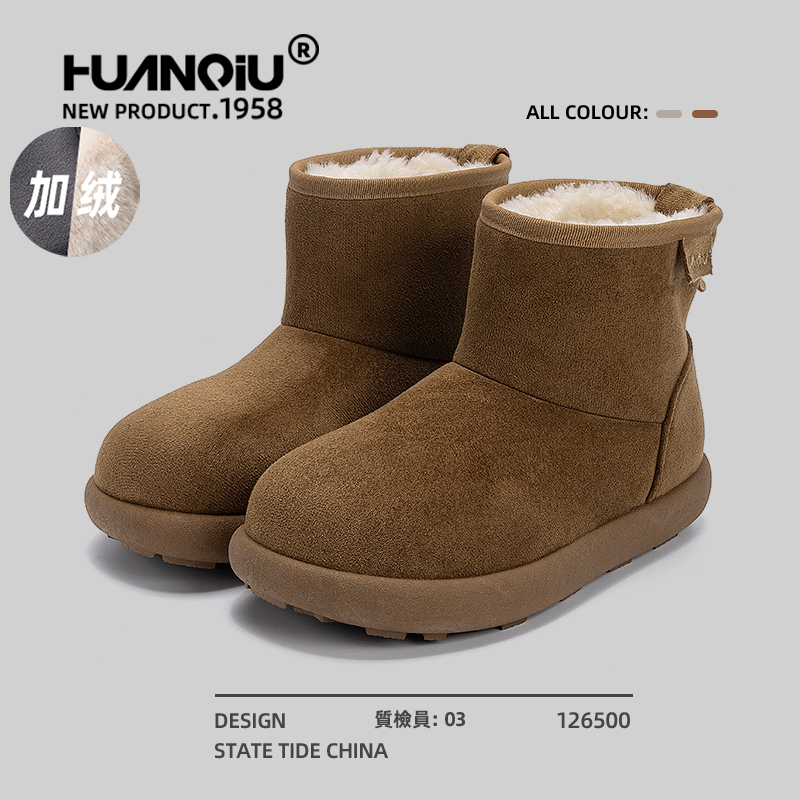 环球厚底加绒保暖雪地靴女款冬季2025新款短筒皮毛一体东北大棉鞋