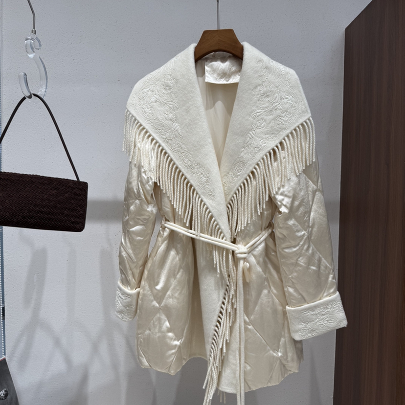 童心家典气质时尚流苏显瘦保暖羽绒服外套配腰带009-8222
