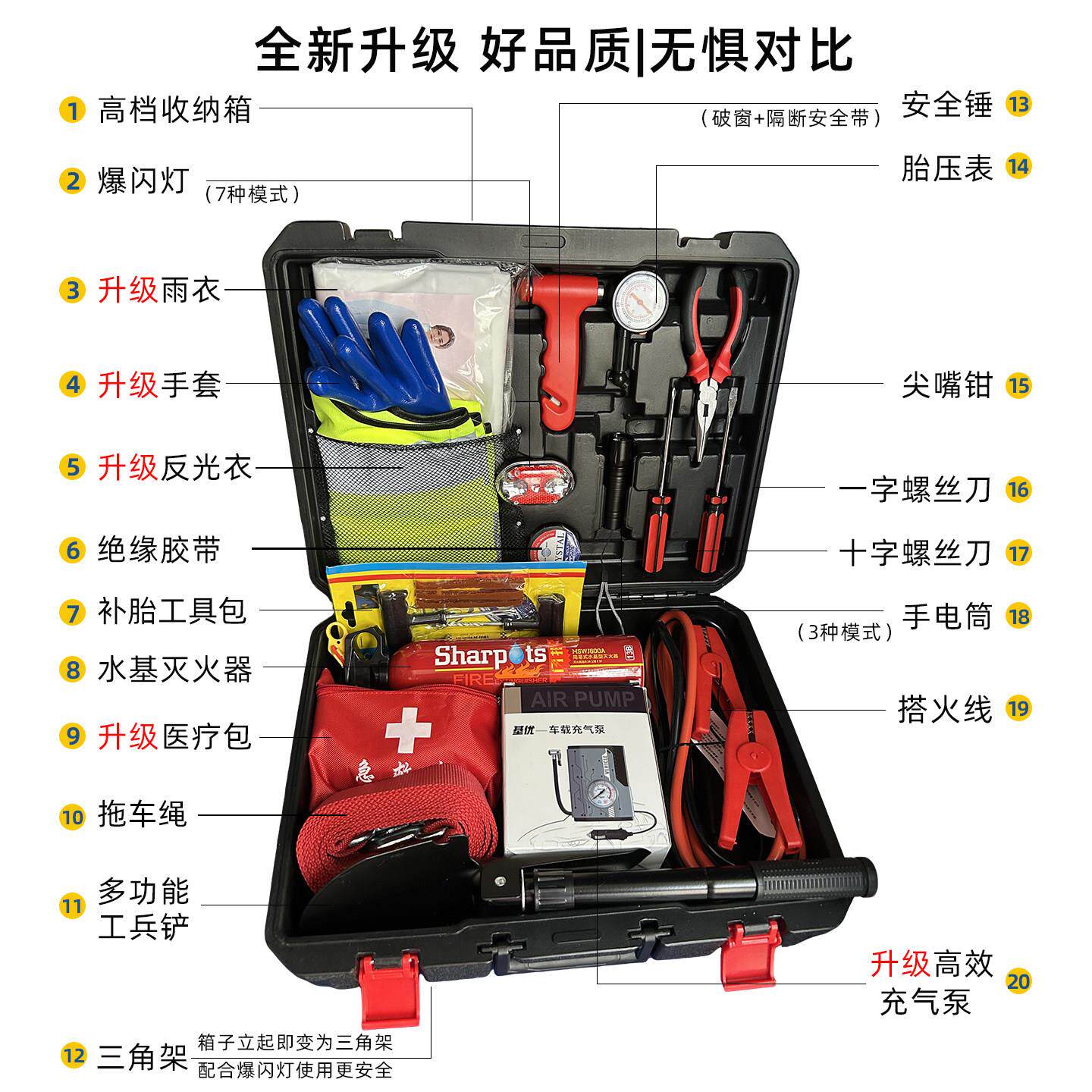 基优车载逃生包汽车车辆救援工具箱补胎自驾游安全消防急救灭火器