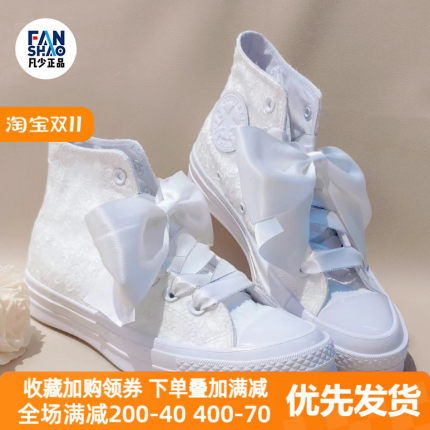 Converse匡威1970s女鞋蝴蝶结婚鞋白色高帮休闲帆布鞋男女A07078C