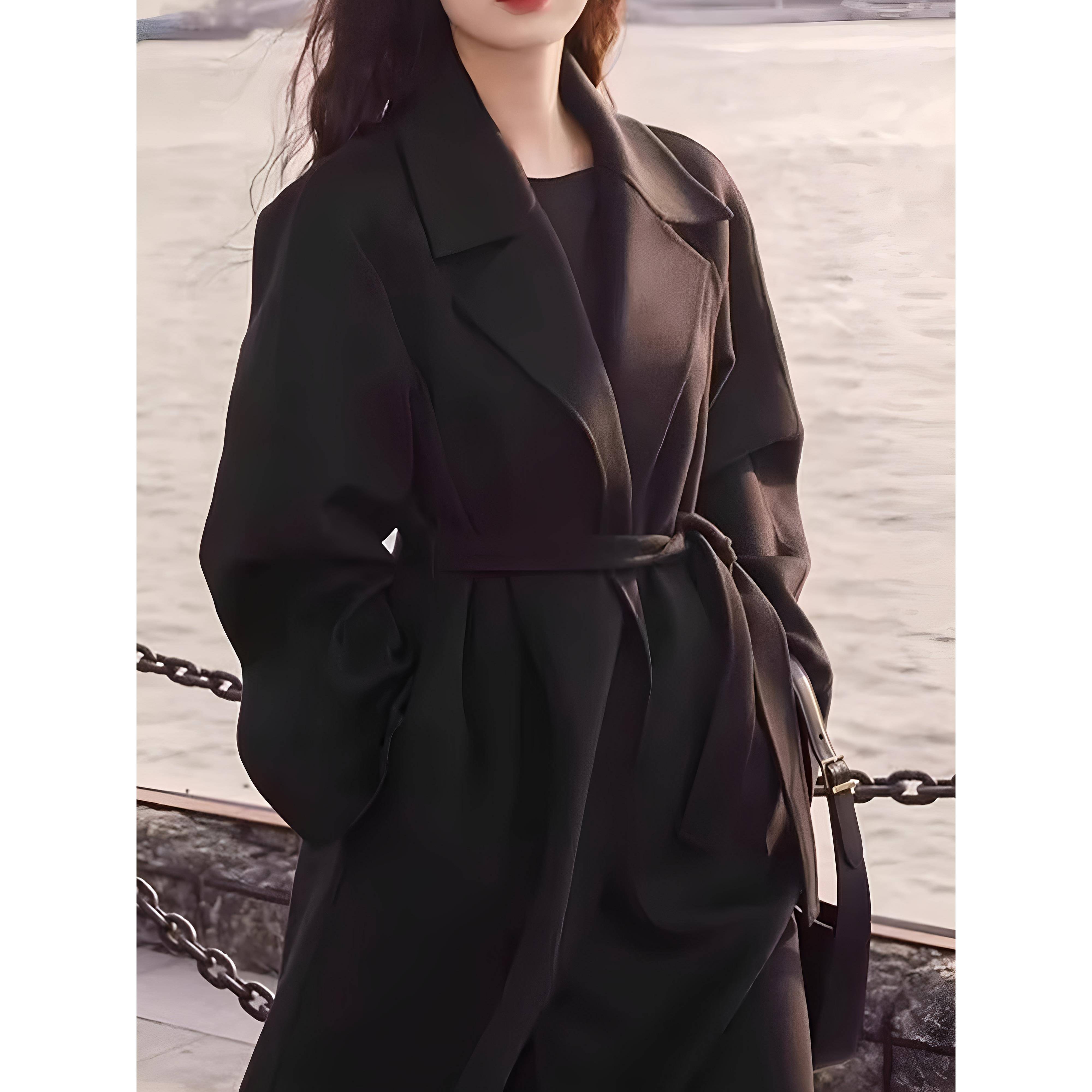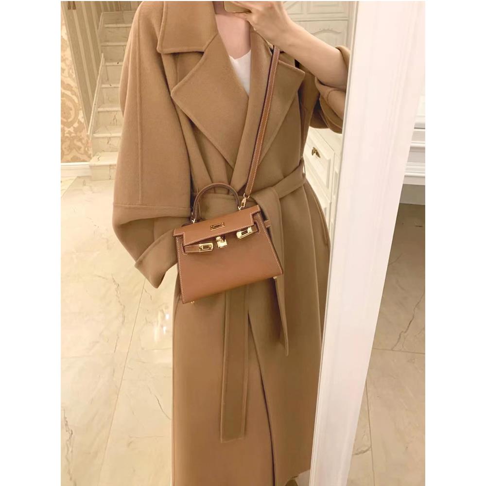 西西里红色双面呢大衣女小个子2025秋冬新款宽松高级感毛呢外套女
