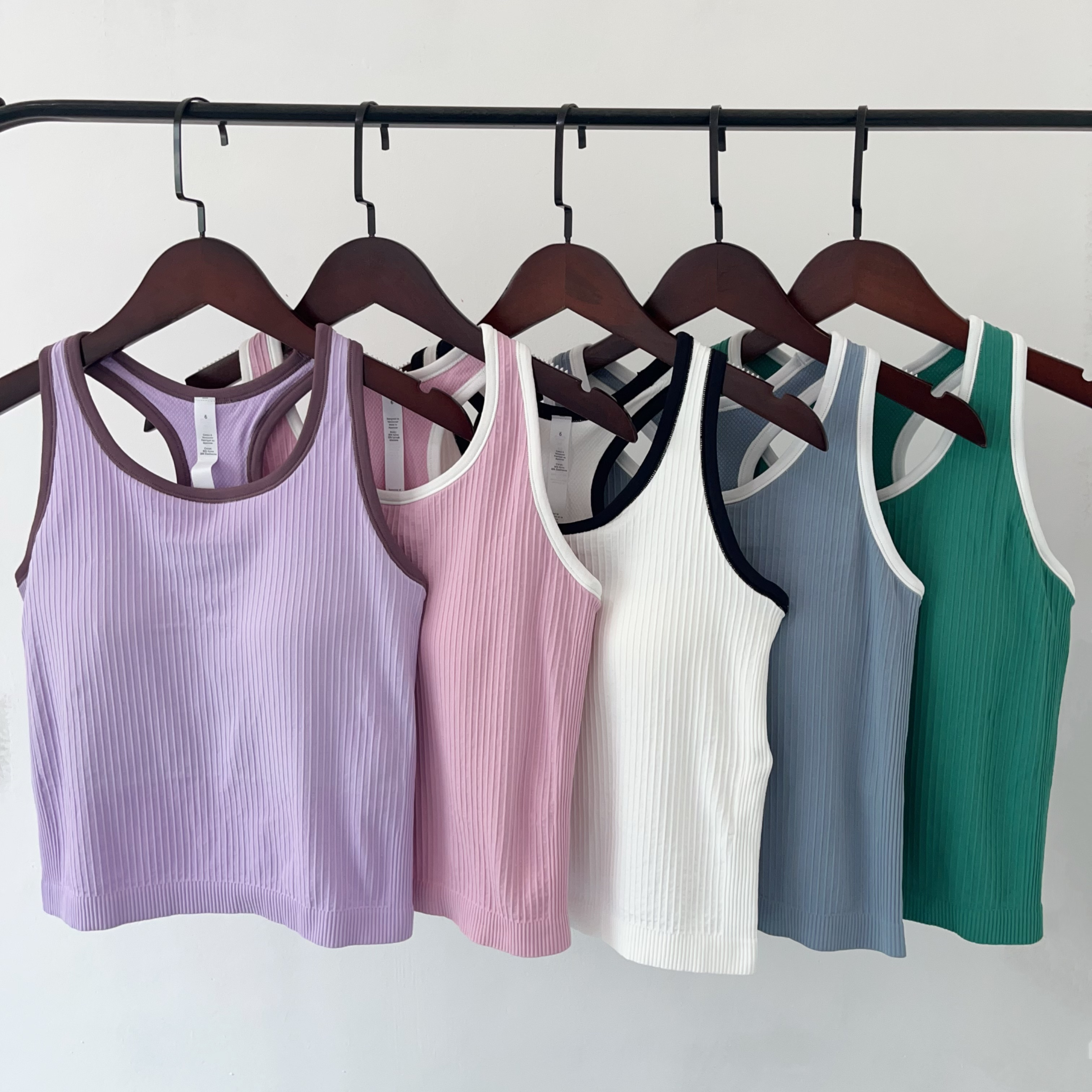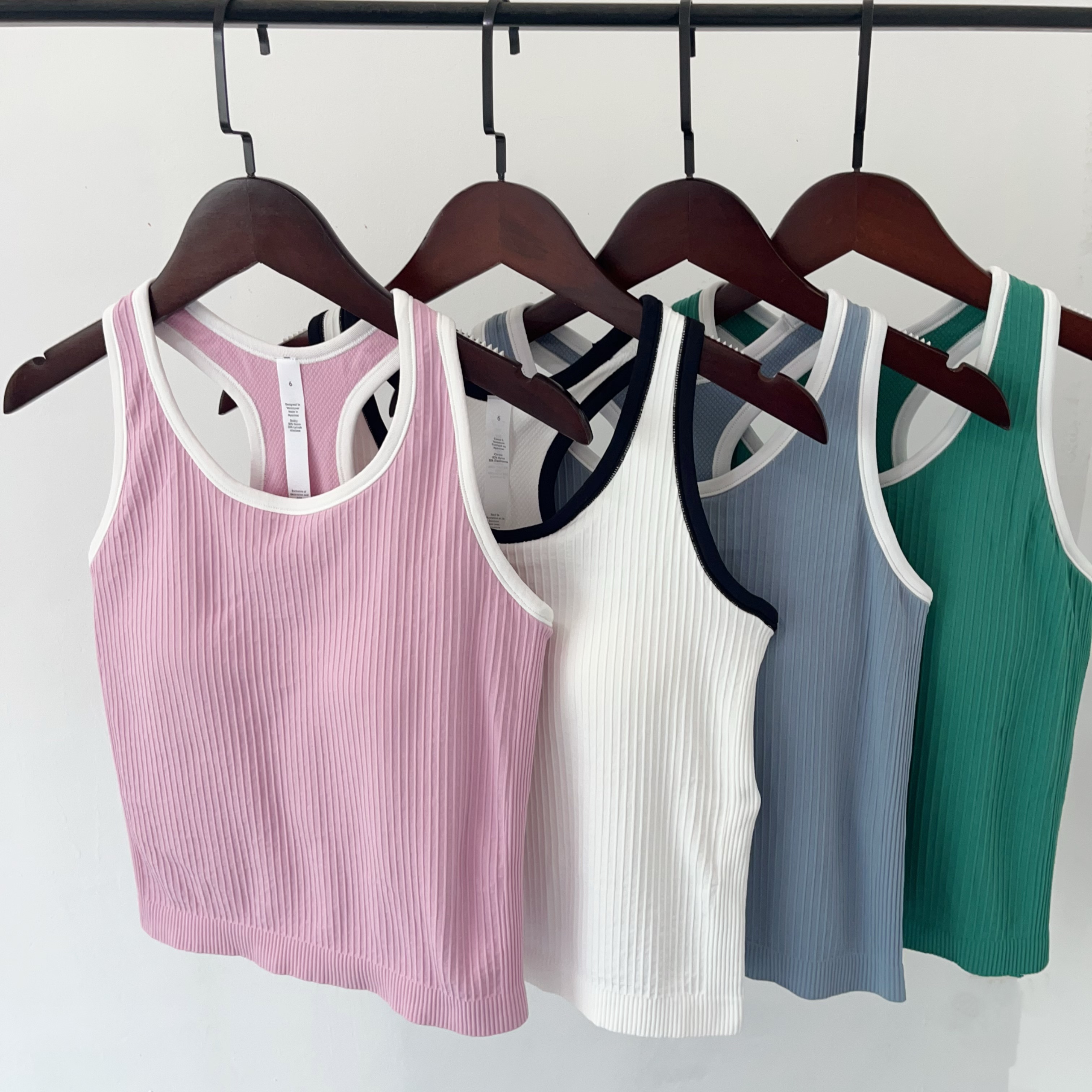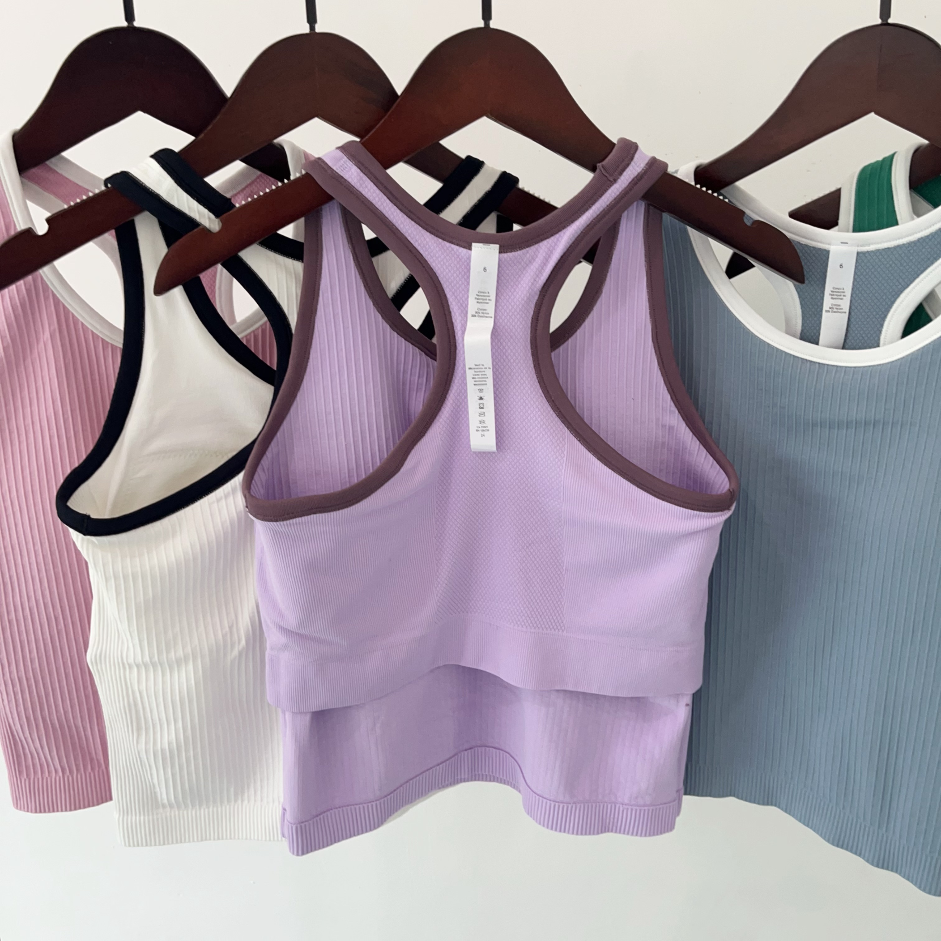新款一体式固定胸垫撞色经典工字背心式运动文胸外穿健身瑜伽上衣